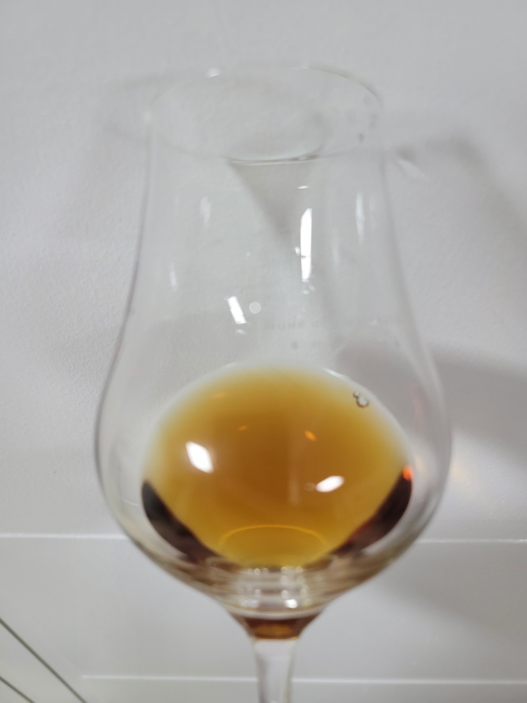 목 넘김 및 여운: 도수 대비 자극적인 느낌이 덜 한 목 넘김이다. 가죽, 가벼운 흙내음, 담뱃잎, 마른 신문지, 건표고 가루, 코코아파우더 따위가 비강에 흩날리는 듯하다. 이후 건푸룬과 다크초콜릿의 뉘앙스가 이어지다가 툭 끊긴다. 혀에는 쌉싸름함 카카오닙스, 바싹 마른 건포도의 응축된 단맛과 김빠진 콜라를 넘긴 뒤의 잔당감, 고소한 견과류 뉘앙스가 남는다. 여운이 길다거나 풍부한 느낌은 아니지만, 잡맛 없이 깔끔하다.