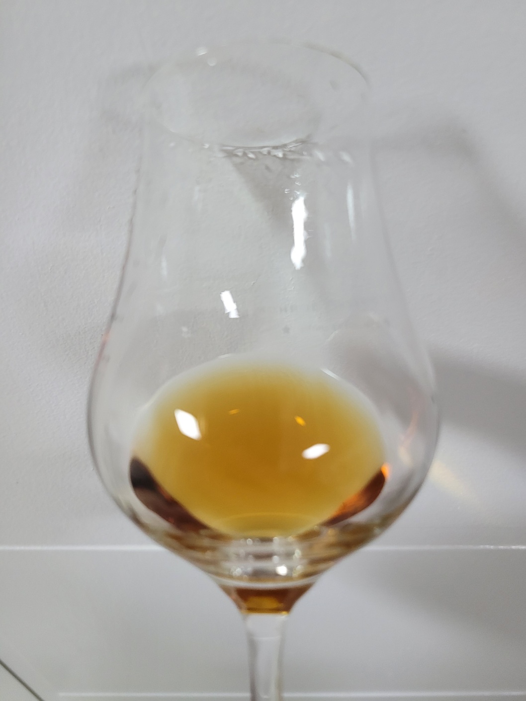 목 넘김 및 여운: 살짝 자극적인 목 넘김이다. 석탄, 까맣게 탄 재, 랍상소총의 훈연향, 말린 정향, 흑후추, 세무가죽, 담뱃잎, 건푸룬, 블랙커런트 따위가 폭죽 터트리듯 이리저리 배회한다. 이후 프렌치 라벤더, 제비꽃, 마른 허브럽드, 빨랫비누 그리고 약간의 파우더리한 느낌이 가늘고 길게 이어진다. 혀에는 강냉이과자의 검은 심지 부분에서 오는 미약한 탄맛, 씨솔트 초콜릿, 씨앗이 가득한 반건조 무화과의 응축된 단맛과 쌉싸름함, 발효차의 뉘앙스가 느껴진다.