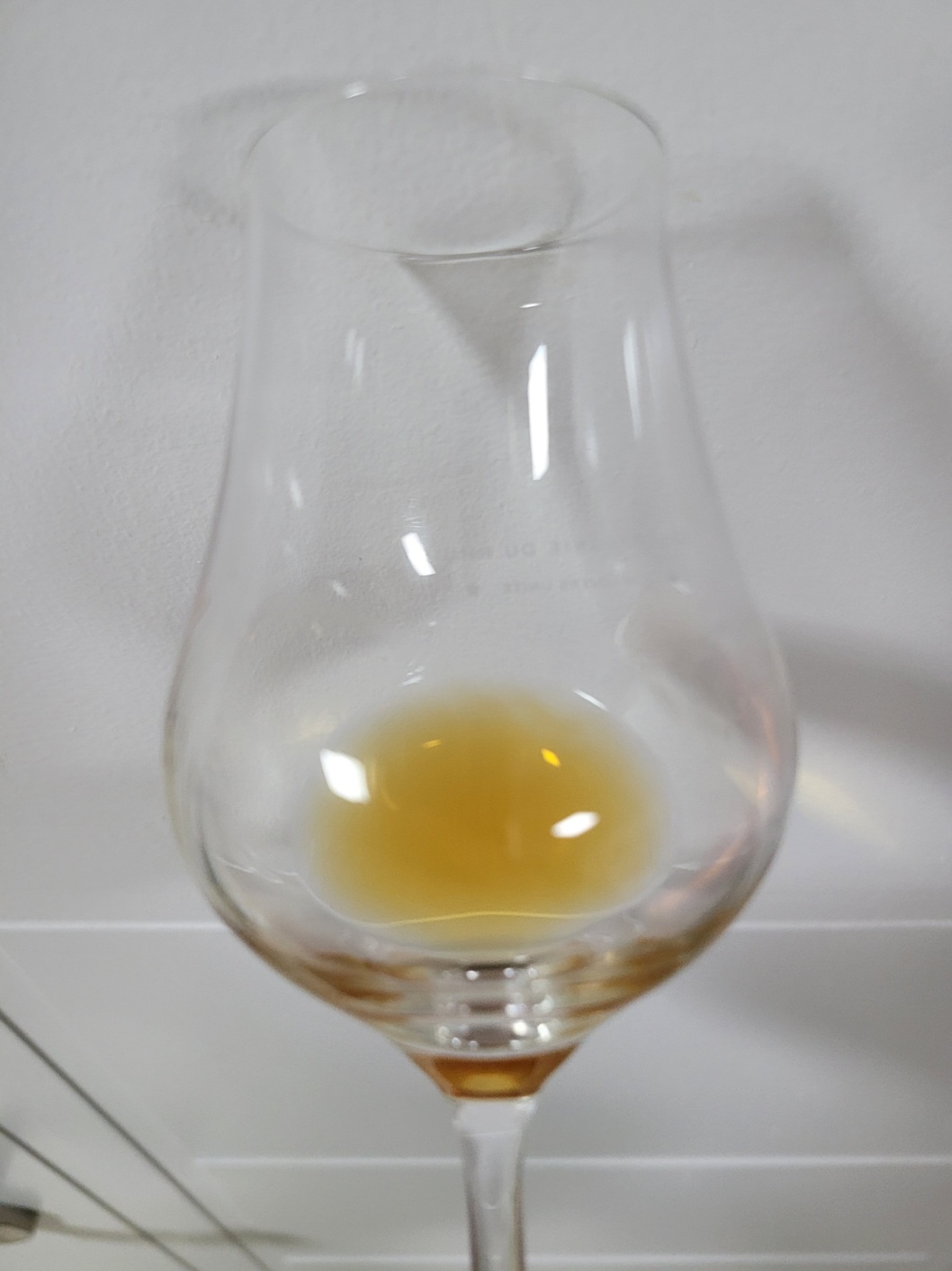 목 넘김 및 여운: 도수에 비해 부드러운 목 넘김이다. 짙은 에스프레소의 향기, 세무가죽, 말린 정향, 흑후추, 육두구, 흙내음, 참숯에 구워낸 듯한 파인애플 시트러스, 트러플, 오묘한 화독내 그리고 구두약의 향이 두껍고 길게 이어진다. 혀에는 감칠맛과 짠맛이 두껍게 올라오는데, 건과일의 단맛과 발사믹의 산미가 동반되면서 기분 좋은 여운을 자아낸다. 가라앉고 난 뒤에도 혀에 씨솔스 초콜릿의 어두우면서도 짭조름한 느낌이 계속해서 올라온다. 카카오닙스의 쌉싸름함으로 마무리.