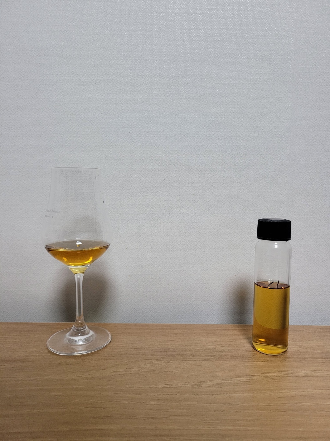 향: 알코올이 가볍게 치대며, 광택제 뉘앙스가 빠르게 훑고 지나간다. 달짝지근한 허니버터칩, 향긋한 잡화꿀과 여러 가지 견과류 분태를 섞은 듯한 고소함, 투명한 멍이 든 꿀사과와 물컹한 황도복숭아의 단향, 말린 카모마일, 녹은 촛농 또는 열이 가해진 밀랍 등 전체적인 톤이 차분하게 가라앉아 있다. 맵싸한 향의 생강차, 육두구, 강황가루, 잘 구워진 팬케익, 마늘빵 등의 향이 은은하게 느껴지기도 한다.