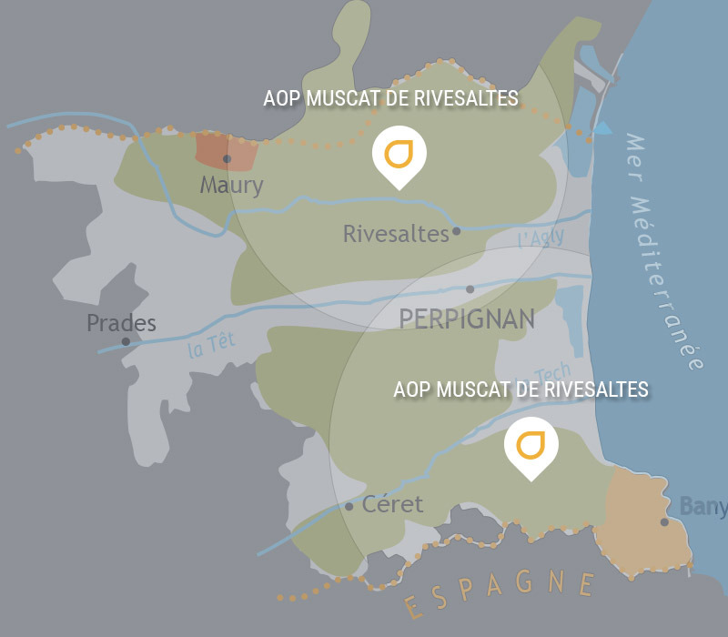 Muscat de Rivesaltes, whose appellation was initially recognised by decree on 29 August 1956, is a powerful and intense sweet natural wine. Its colour evolves from pale gold when it is still young to amber tones as it ages. The Muscat of the year is called