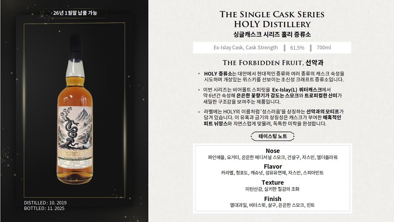 병입자: Holy Distillery / Distillery Bottling / The Single Cask Series #1 : <The Forbbiden Fruit> / Selected by Blenders Co. (South Korea Exclusive)
