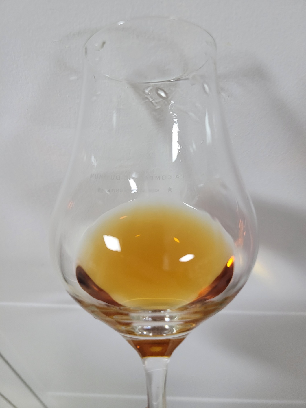 목 넘김 및 여운: 살짝 자극적인 목 넘김이다. 흑설탕 태운내와 약간의 타르 뉘앙스가 비강을 가득 메운다. 이후 천천히 가라앉으면서 마라스키노 체리, 말린 정향과 진저브레드 케익, 고소한 피칸파이의 향이 두껍고 길게 이어진다. 혀에는 적포도 껍질을 씹는 듯한 탄닌과 강냉이과자의 검은 심지에서 오는 탄맛이 느껴지고, 이후 잇몸 사이사이에서 초코퍼지스러운 단맛과 검은 베리류의 산미가 조금씩 배어 나온다.