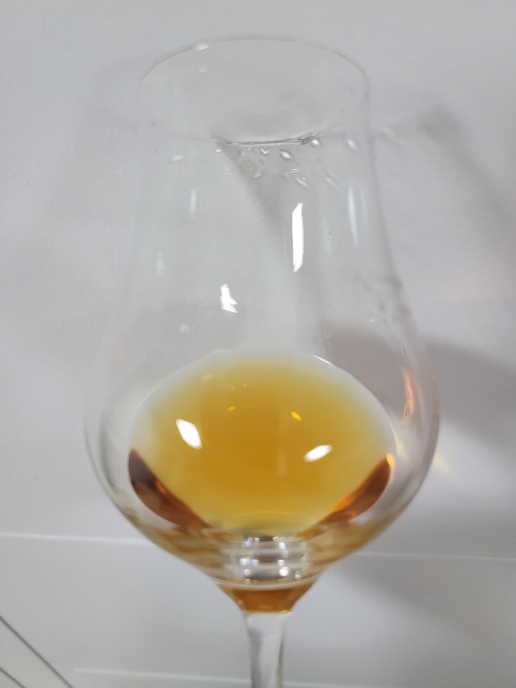 목 넘김 및 여운: 삼키기가 버거운, 매우 폭력적인 목 넘김이다. 식도를 타고 내려가는 느낌이 그대로 든다. 오히려 오렌지보다는 만감류나 짓무른 귤의 향이 지배적이다. 광택제 뉘앙스가 빠르게 훑고 지나가면 얼그레이, 시나몬, 육두구, 캐러웨이, 생강젤리의 맵싸한 향이 두껍게 이어진다.
