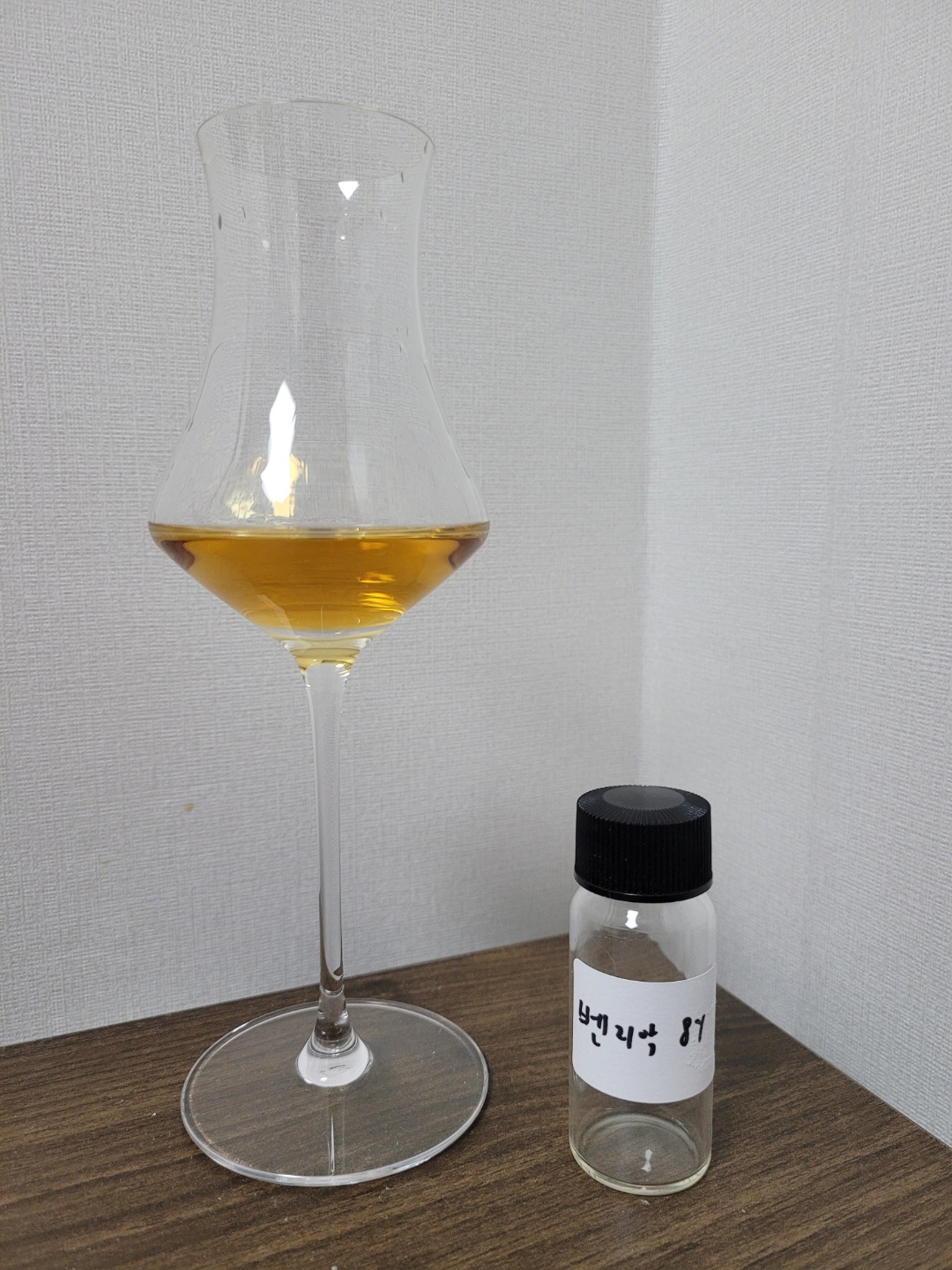향: 저숙성 특유의 날카로운 알코올이 찌른다. 풍부한 바닐라 사이로 건포도와 건자두의 미약한 달콤함이 올라온다. 냉장고에서 상당한 갈변이 진행된 빨간 사과 과육의 달콤함과 당도 가득한 배의 향이 그윽하게 느껴지기도 한다. 강한 부즈와 셰리 캐스크가 만나 몰트의 개성을 지워버린다. 알싸함과 매콤함은 없으나, 끝에 고수향이 잡힌다.