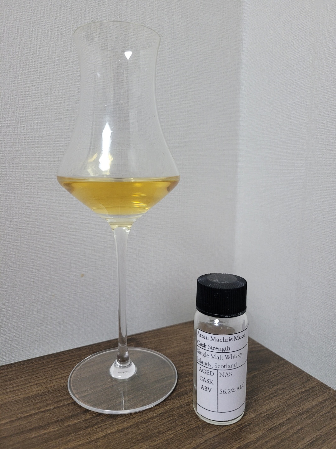목 넘김 및 여운: 삼킬 때는 괜찮으나, 식도의 위치는 정확하게 짚을 수 있을 정도의 자극이다. 코로는 은은한 피트와 바닐라 정도가 올라온다. 혀에는 몰트의 고소함과 페놀 계열 피트가 남으며 약간의 탄닌에서 오는 자극과 바닐라의 단맛이 10초를 가지 않는다.