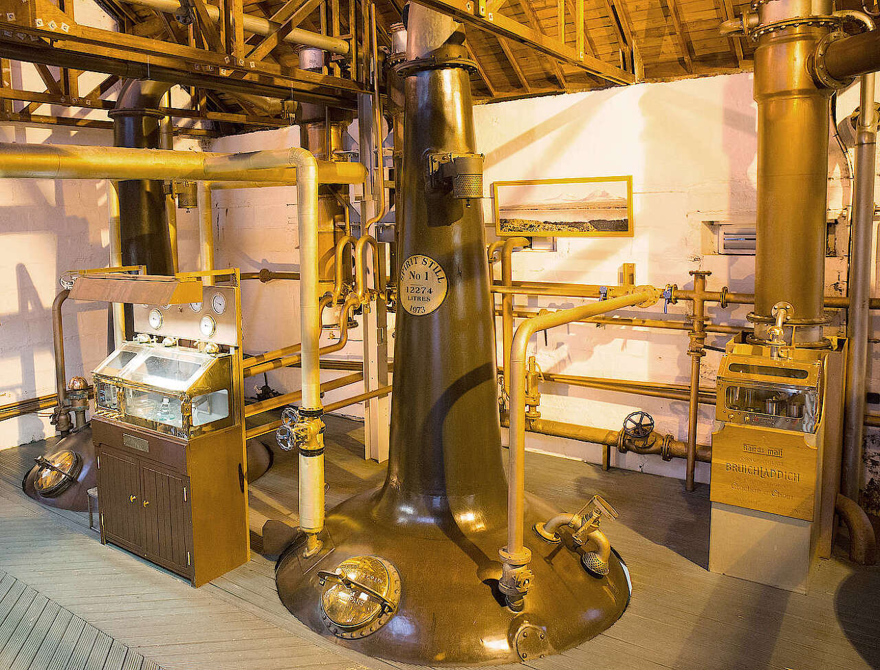 독특하게 키가 크고 목이 좁은 증류기는 매우 순수하고 독창적인 증류주를 생산하기 위해 선택되었으며, 이는 오래된 증류소에서 생산되는 스타일과는 반대이다. 17,500리터 용량(가용 용량 11,500리터)의 워시 스틸(Wash Still) 2개와 12,500리터 용량(가용 용량 9,000리터)의 스피릿 스틸(Spirit Still) 2개 그리고 인버레븐 증류소(Inverleven)에 있던 로몬드 스틸(Lomond Still), 총 5개의 증류기가 스틸하우스에 위치해 있다. 특히 로몬드 스틸은 목(Neck) 부분에 위치한 천공 구리 플레이트(Copper Plates)를 조정해 조금 더 가벼운 컬럼 스타일의 증류액과 진(Gin)을 생산할 수 있다. 증류기를 가열하는 데 증기를 사용하며, 원통 다관식 응축기(Shell-and-Tube Condesner)를 통해 증류액을 응축시킨다.