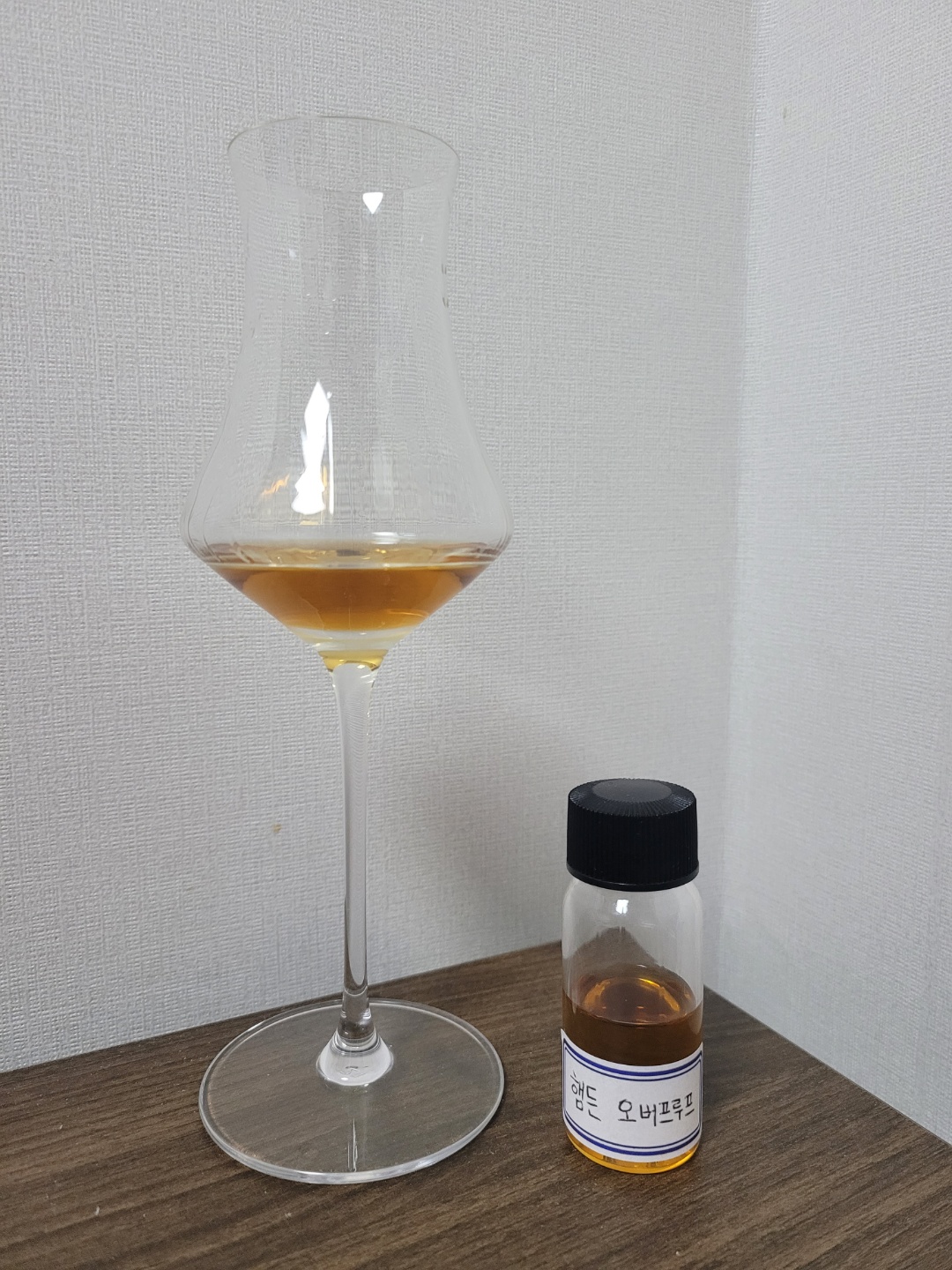 목 넘김 및 여운: 자극이 매우 강하다. 코로는 오렌지의 시트러스가 강하게 터진다. 뒤로 말리지 않은 살구와 바닐라가 강하고 길게 이어지며, 마지막에는 백도 복숭아의 잔향이 은은하게 남는다. 혀에는 캐러멜의 달콤함이 금세 휘발된 뒤, 약초에서 오는 쓴맛이 도드라지게 나타난다.