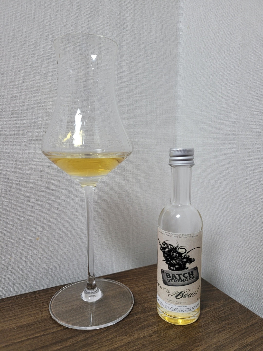 맛: 찌르진 않으나, 주정 냄새가 강하다. 나무를 태운 재에서 오는 매캐함, 옅은 바닐라, 물러진 모과의 시큼함과 레몬 껍질의 싱그러운 시트러스가 느껴진다. 공기와의 접촉이 길어질수록 알코올이 안정된다. 몰트의 고소함이 조금씩 살아난다. 청사과의 풋풋함, 다량의 미네랄, 약간의 노란 꽃향과 빵 반죽의 효모 향이 느껴진다.