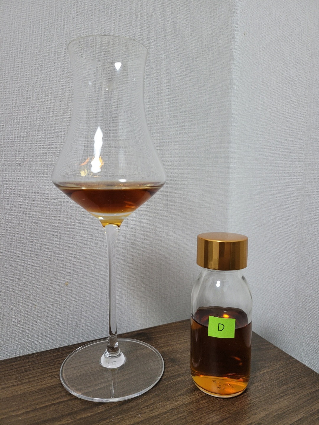 향: 찌르는 것은 없으나 알코올의 존재감이 강하다. 젖산 발효취가 미약하게 남아있다. 바닐라를 중심으로 건포도의 꿉꿉함, 밀크 초콜릿의 단향이 올라온다. 공기와의 접촉이 길어지면서 향들이 점차 일체화 된다. 커피 땅콩향과 몰트의 고소함이 어우러진다. 알코올이 점점 자취를 감추면서 살구에서 오는 시트러스가 살짝 엿보인다.