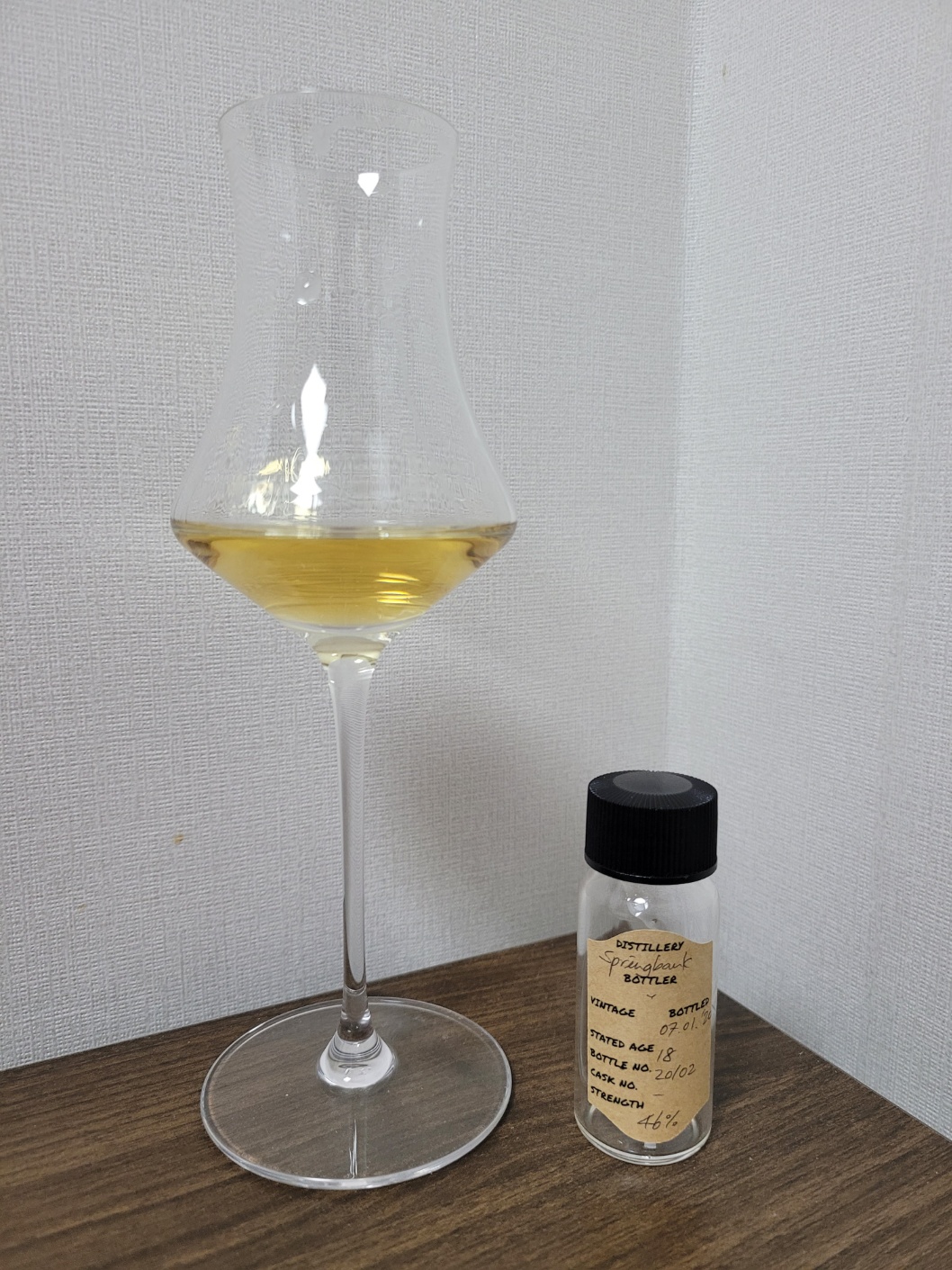 총평: 한 마디로 정의하자면 "마카다미아 화이트초콜릿 쿠키". 스프링뱅크의 개성은 강하지 않으나, 전체적으로 몰트와 과일의 풍미가 불편함 없이 밸런스가 잘 잡혀있다. 임팩트는 없다.