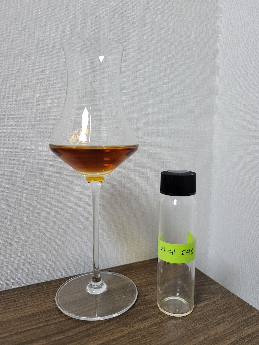 향: 향이 꽉 막혀있어 어느정도 시간을 들였다. 알코올의 존재감이 강하다. 두터운 오크에 정향, 육두구, 계피(시나몬 X) 따위의 향신료가 묻어 나온다. 그랑 샹파뉴 특유의 허브 뉘앙스는 우드스파이스에 가려져 다소 약하게 느껴진다. 새송이보다는 마른 표고의 쿰쿰함, 양지바른 땅의 강한 흙내음 따위의 란시오가 잡힌다. 줄기와 껍질을 같이 짓이긴 청포도와 살구, 황도 복숭아 같은 핵과류 뉘앙스가 은은하게 퍼진다.