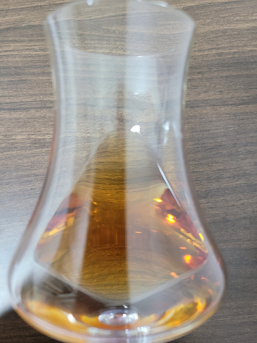 목 넘김 및 여운: 자극이 강하다. 삼키자마자 상온에 오래 두어 쿰쿰해진 파인애플이 터진다. 비강에서 진한 오크향과 시나몬이 계속해서 맴돈다. 혀에는 오크 탄닌의 떫은맛이 쓱 훑고 간 뒤,카카오닙스의 씁쓸함이 나타난다. 견과류의 고소함이 길게 이어진다.