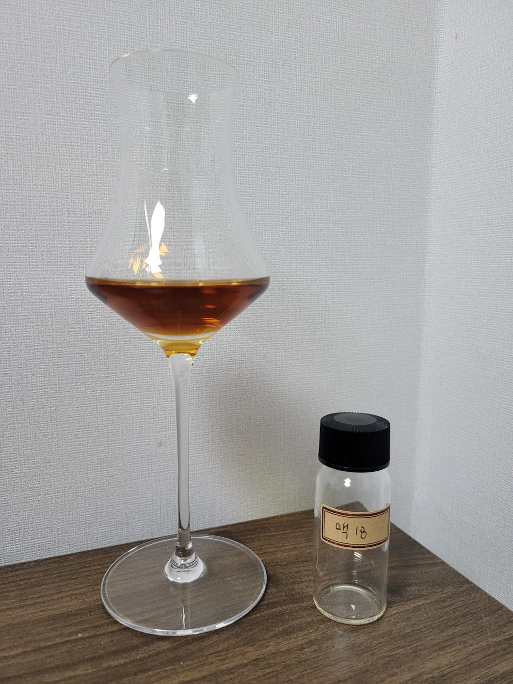 향: 약간의 알코올 자극과 함께 건자두의 시트러스와 진저브레드 특징이 바로 느껴진다. 꿉꿉한 정도는 약한 건포도의 달콤함이 오크터치에 진득하게 묻어 나온다. 다크초콜릿이 지배적이고 끝에 몰트의 개성이 약간 잡힌다. 공기와의 접촉이 길어질수록 붉은 베리류의 시트러스에서 감귤류의 시트러스로 조금씩 바뀐다. 오크의 터치가 여전히 강하지만서도 그 이면에서 약간의 바닐라와 건살구 그리고 베르가못이 천천히 올라온다.