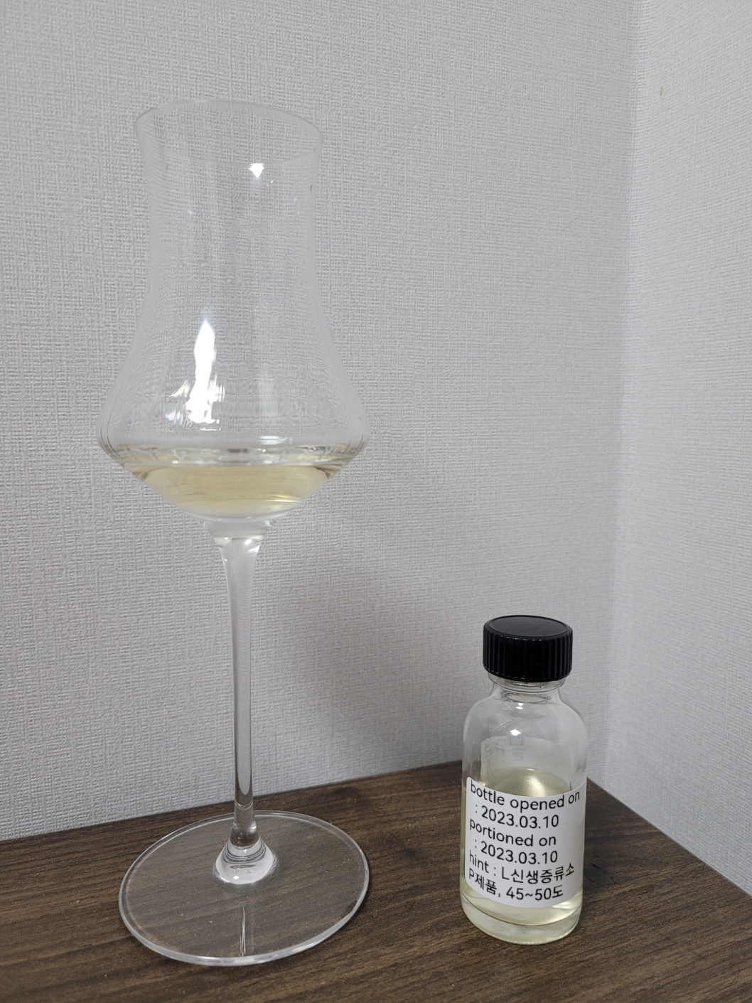 목 넘김 및 여운: 자극은 강한 편이다. 알코올솜의 휘발성 느낌이 강하며, 스모키와 곡물의 고소함이 은은하게 올라온다. 혀에서는 단맛이 금세 사라진다.