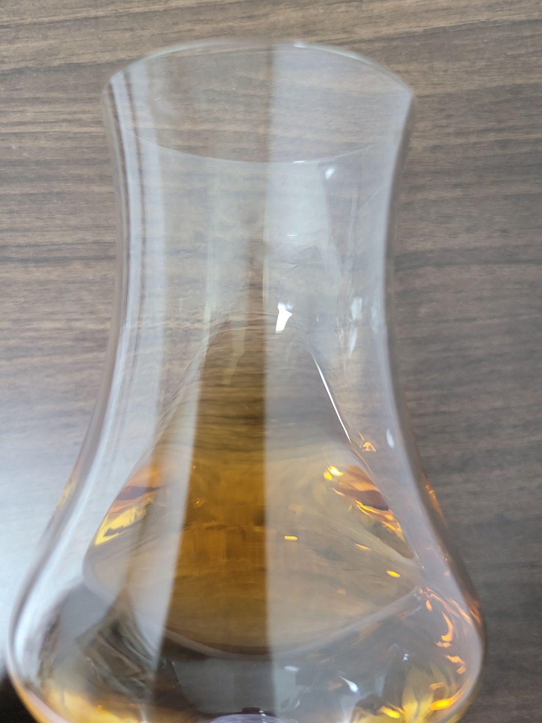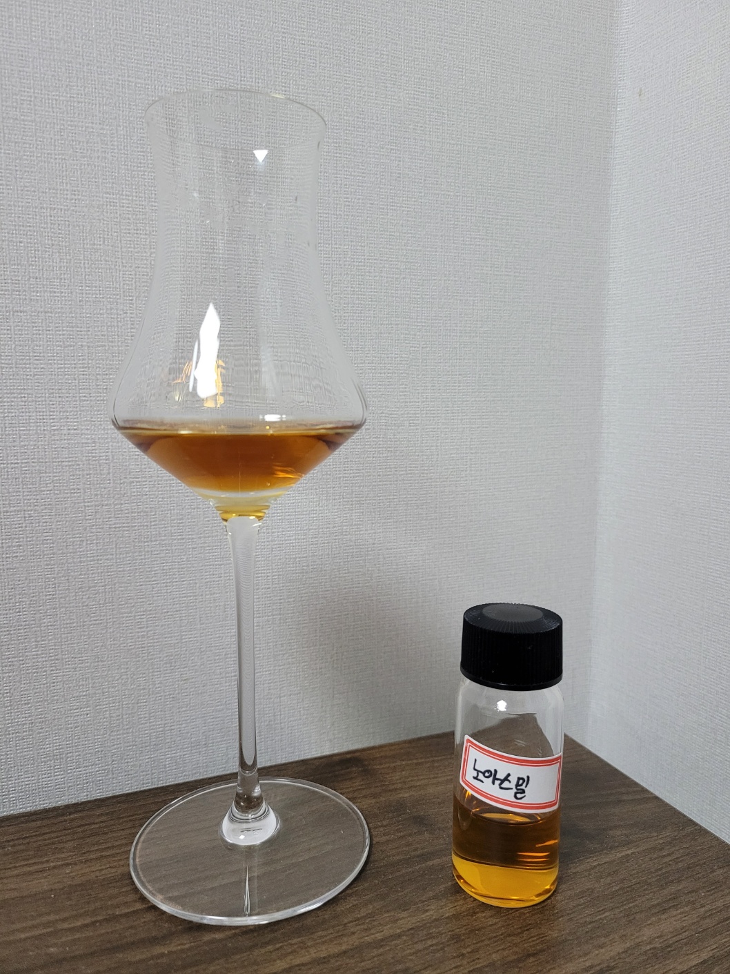 향: 알코올이 튀지는 않으나, 존재감이 강하다. 진한 오크터치에서 흑설탕과 캐러멜이 묻어나온다. 불에 살짝 구워낸 마쉬멜로의 달콤함이 풍부하다. 공기와의 접촉이 길어질수록 푸릇푸릇한 풋내 보다는 건초에서 오는 풋내가 조금씩 올라온다. 독특한 반건시향이 잡힌다. 향이 복잡하지 않고 단조롭다.