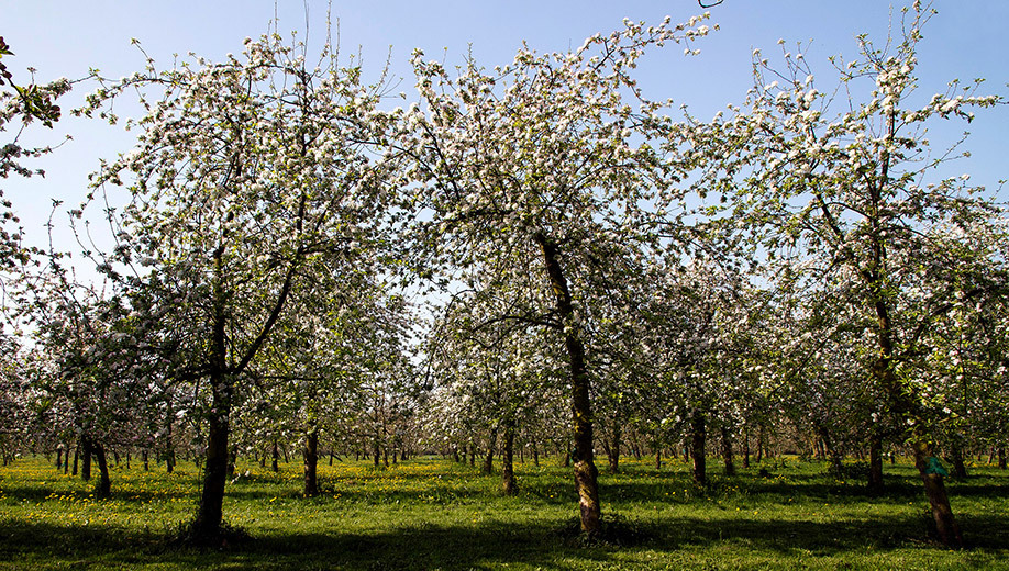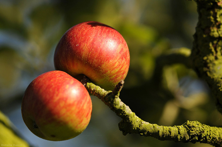 도멘 듀퐁의 과수원은 30헥타르에 걸쳐 있으며, 13가지의 사과 품종과 약 6000그루의 사과나무를 재배하고 있다. 여러 품종의 사과를 배합함으로써 입 안에서의 신선함과 섬세함 그리고 미묘함을 부여하도록 노력한다. 특별히 선별된 13종류의 사과 품종은 다른 품종에 비해 산(Acid)과 탄닌이 강한 성질을 가지고 있다. 이는 서양배를 전혀 사용하지 않기 때문이며 산도 조절을 위해 산성이 강한 사과를 쓰기 때문이다.