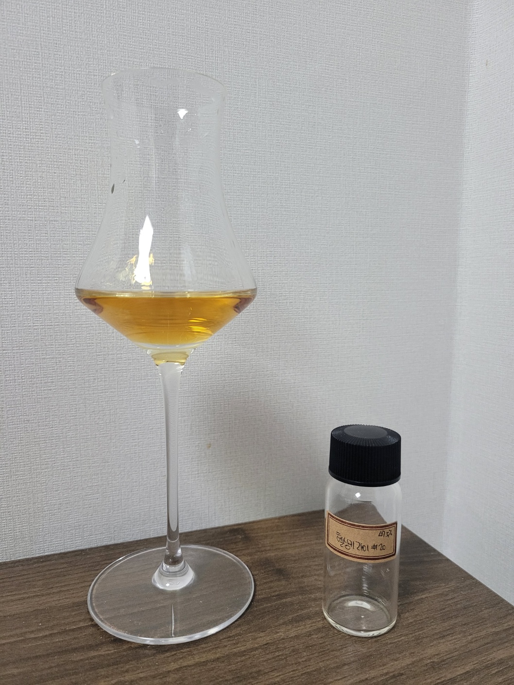 향: 알코올과 레몬 껍질의 시트러스가 약간 튀는 편이다. 상온에 오래 방치한 빨간 사과의 푸석한 단내와 살구 그리고 파인애플이 느껴진다. 특유의 꼬릿함이 있는데, 마치 오래된 할머니집의 전기장판 주변에서 올라오는 곰팡내 같기도 하다. 공기와의 접촉이 길어질수록 스모키가 은은하게 올라와 사과나무 훈연칩을 연상케 한다. 껍질을 제거한 캐슈넛, 브라질너트 따위의 견과류 느낌이 강하다. 고소함 보다는 느글느글함에 가깝다. T.D.L 럼 특유의 플라스틱에 가까운 에스테르도 있다.