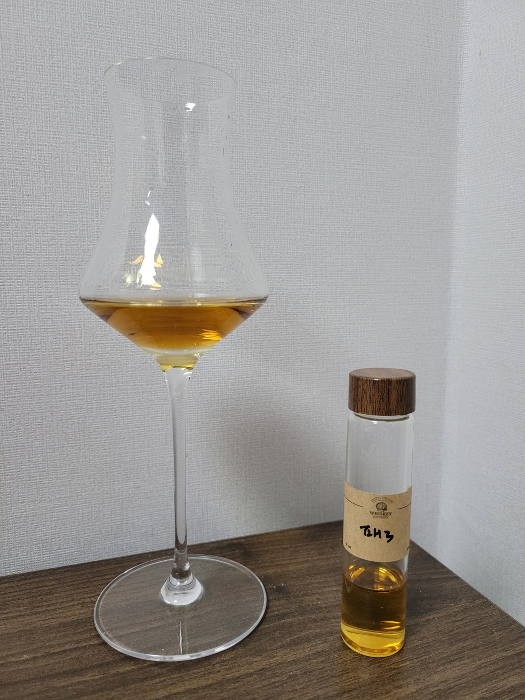 목 넘김 및 여운: 강한 자극이다. 코로는 알코올이 크게 터진 후, 바닐라와 캐러멜의 단향이 조금씩 내려앉는다. 마찬가지로 혀에도 바닐라와 캐러멜의 단맛이 났다가 뭐가 있었냐는 듯 금세 사라진다.