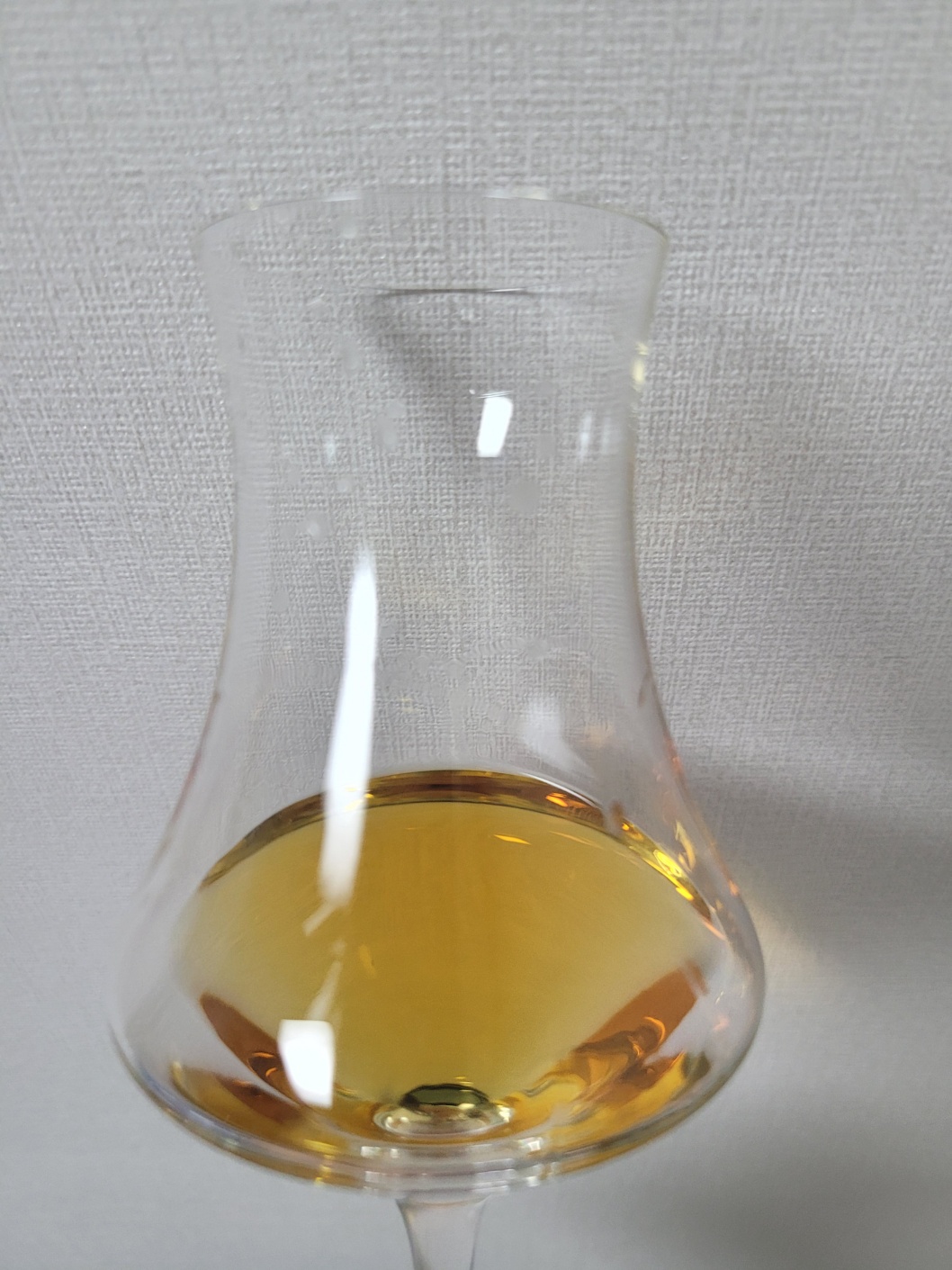 향: 알코올 튀는 것 없이 안정화가 잘 되어있다. 쁘띠 샹파뉴 꼬냑과 혼동이 올 정도로 살구와 머스켓향이 쉴 새 없이 올라오며, 오렌지 과육의 시트러스가 터진다. 따라 들어오는 시나몬과 육두구는 코를 알싸하게 한다. 설탕을 넣고 조린 사과향에 오크의 터치가 더해져 갓 구운 애플파이 같은 느낌을 준다.
