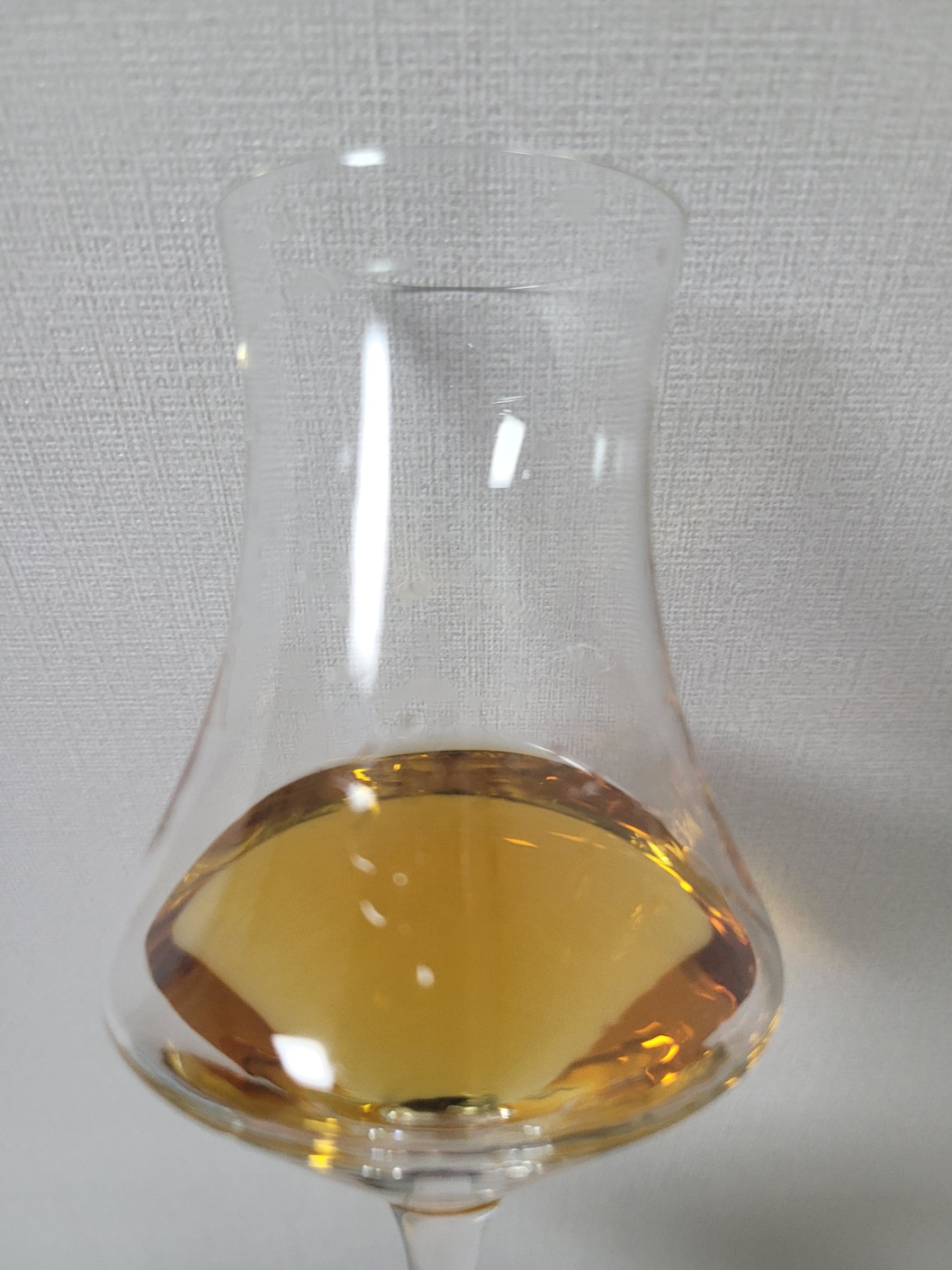 향: 정로환과 마른 흙내음이 짙게 내리 깔리면, A1 스테이크 소스와 타임, 오레가노 등을 말린 허브 가루가 느껴진다. 셰리의 터치는 다크 초콜릿 뉘앙스 정도만 내줄 뿐 자기주장이 강하지 않다. 오히려 그 속의 바닐라가 더욱 풍성하다. 공기와의 접촉이 길어질수록 강한 요오드와 옅은 스모키가 나타난다. 건표고를 비롯해 오크, 세무 가죽, 아몬드 껍질 정향, 육두구가 즐비해진다. 끝에 보리와 결명자를 같이 넣어 끓이면 올라오는 강한 구수함이 느껴진다.