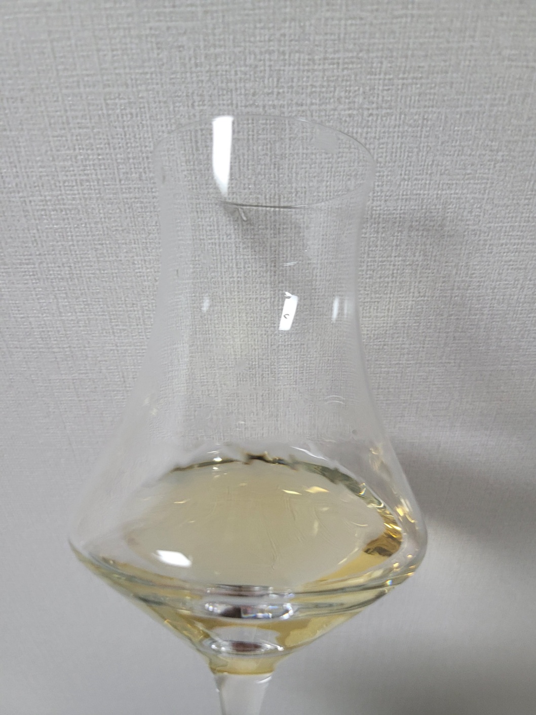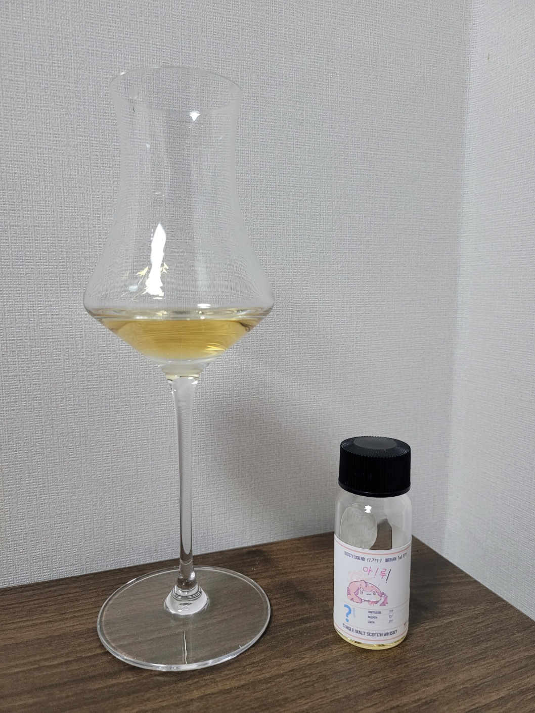 향: 한없이 스피릿에 가까운 강한 알코올과 약간의 젖산 발효취가 올라온다. 레몬보다는 라임에 가까운 날카로운 시트러스와 백후추의 알싸함이 코를 후벼 판다. 공기와의 접촉이 10분을 넘어서야 고소한 몰트 내음의 테두리가 보이기 시작한다. 옅은 바닐라에 덜 익은 멜론 그리고 미묘한 피트가 나를 놀리는 듯 숨바꼭질한다. 향에 볼륨감이 없고, 직관적이다 못해 옹고집이다.