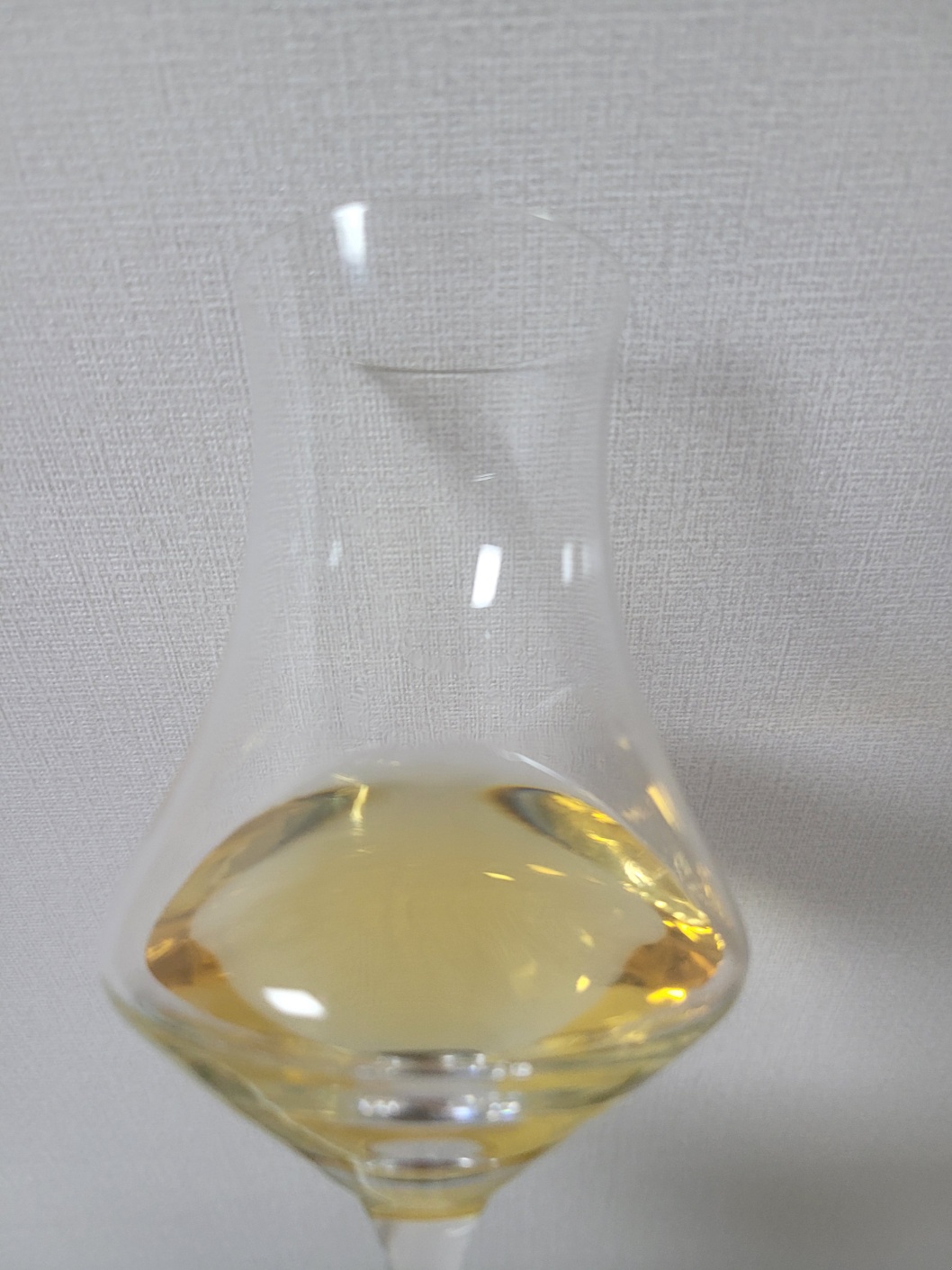 향: 알코올이 튀는 것 없이 안정되어 있다. 대신 경유를 사용하는 차 안의 기름내가 잡힌다. 츠누키 에이징에서 느낄 수 있는 양파 시즈닝 또는 콘소메향이 지배적이다. 옅은 바닐라에 피트를 약하게 벤 몰트 뉘앙스가 강하다. 공기와의 접촉이 길어질수록 전체적으로 부드러워지면서 신슈 에이징 원액 특유의 천도복숭아와 올리브 통조림향이 올라온다. 섬세하나 단순하다.