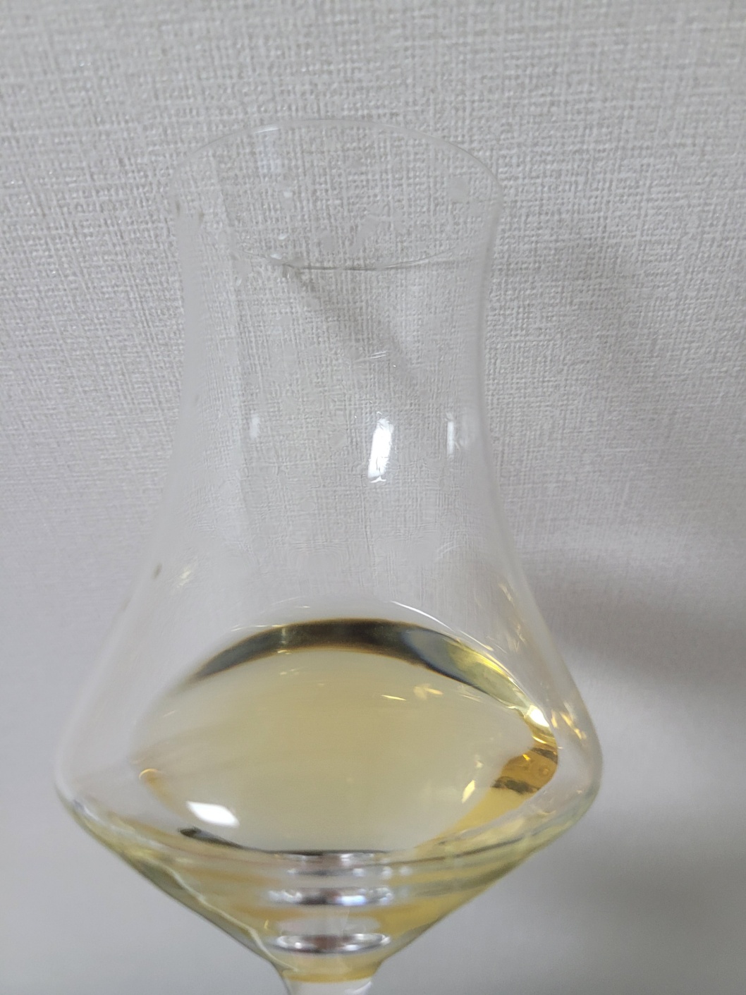 향: 코를 강하게 자극하는 알코올 찌름과 정체 모를 에스테르 그리고 곡물의 고소한 내음으로 가득하다. 공기와의 접촉이 길어질수록 정체불명의 에스테르는 구체화되어 저숙성 동프롱테(Domfrontais) 깔바도스에서 느낄 수 있는 배의 시원함과 옅은 바닐라로 이어진다. 그렇다고 몰트 뉘앙스를 덮은 수준은 못된다. 찌르는 알코올은 점점 줄어드나, 레몬 껍질을 비튼 듯 한 시트러스와 백후추 따위가 튄다. 스모키가 더욱 풍부해지면서 매캐함에 가까워진다. 끝에 흙내음이 잡히며, 시드르 같은 청량함도 올라온다.