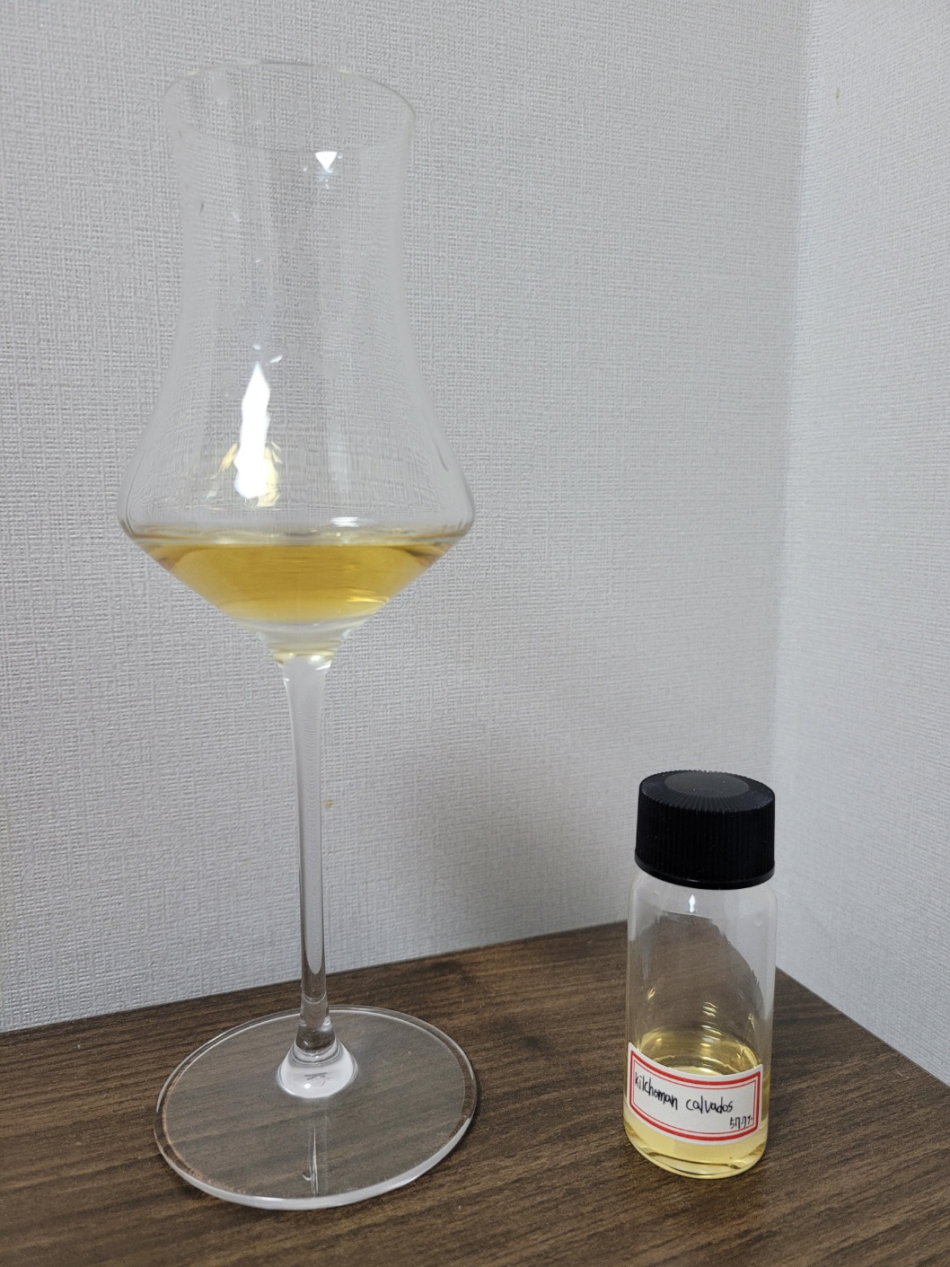 목 넘김 및 여운: 자극이 꽤 강하다. 삼킨 뒤 곧 바로 코가 뻥 뚫릴 만큼의 강한 알코올과 에스테르가 터져 나온다. 이 부분에서 확실히 깔바도스의 영향이 잘 느껴지나, 금세 스모키로 뒤덮인다. 혀에는 미약한 단맛이 금세 휘발되고, 청사과 껍질의 푸릇푸릇한 탄닌과 생무의 쓴맛으로 짧게 마무리된다.
