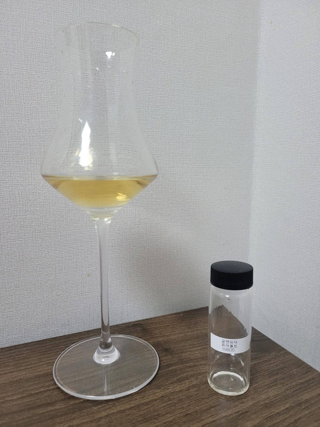 목 넘김 및 여운: 산뜻한 목 넘김이다. 바닐라와 피트를 약하게 밴 몰트의 구수함이 올라오려다가 사라진다. 혀에는 가루약의 씁쓸함과 감칠맛이 가볍게 돌다가 금세 사라진다.