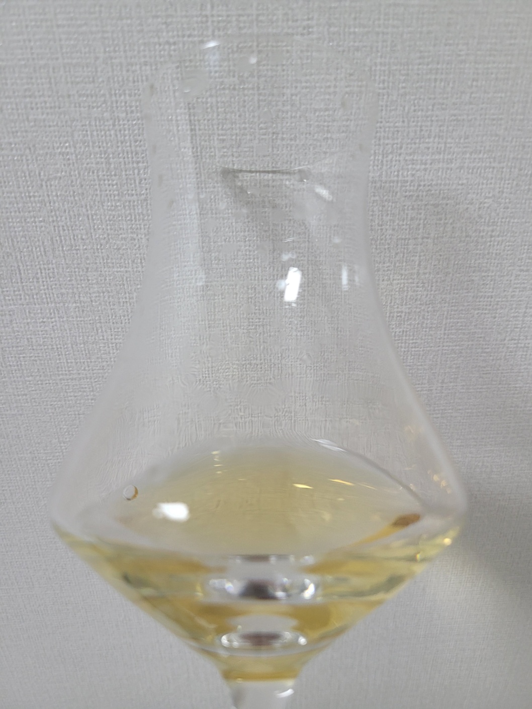 공기와의 접촉이 길어질수록 몰트 뉘앙스와 바닐라 그리고 아르마냑 특유의 하얀 꽃내음이 도드라진다. 멜론의 달콤한 과육 부분, 시원한 배 같은 생과를 비롯해 곱게 간 백후추로 만든 참기름장의 고소한 내음, 화이트 초코의 달콤한 향 등이 느껴진다. 끝은 리슬링의 휘발성 뉘앙스가 나타난다. 전체적으로 향조의 볼륨감이 풍성하면서도 가지런히 정돈되어 있다.