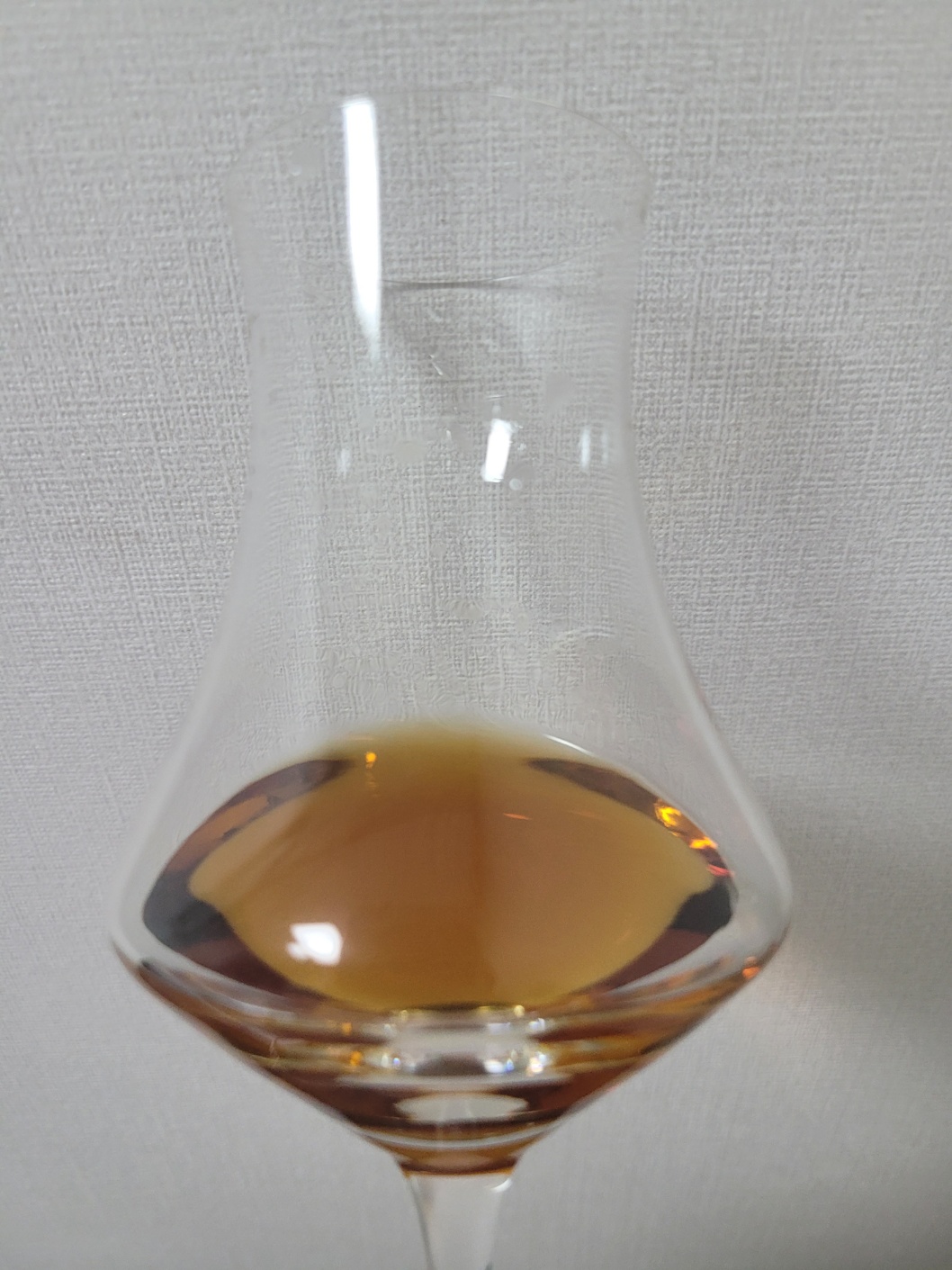 향: 잔에 막 따랐을 때에는 알코올이 조금 튀었으나, 5분 내외로 빠르게 안정화된다. 부담스럽지 않을 정도의 장향, 비가 억수로 쏟아질 때의 지하실에서 나는 곰팡내, 은은하게 피어오르는 제비꽃내음이 있다. 파인애플 즙을 농축해 놓은 듯한 시트러스가 자리 한켠에서 희미하게 빛을 발한다. 건포도나 반건조 무화과 같은 건과일 향미가 계피 따위의 향신료 뉘앙스와 약간의 황(Sulfur)을 압도한다. 몰트의 개성이 캐스크에 잡아먹힌 듯 보여도, 마른 신문지 같은 올드 몰트 뉘앙스가 엿보인다.