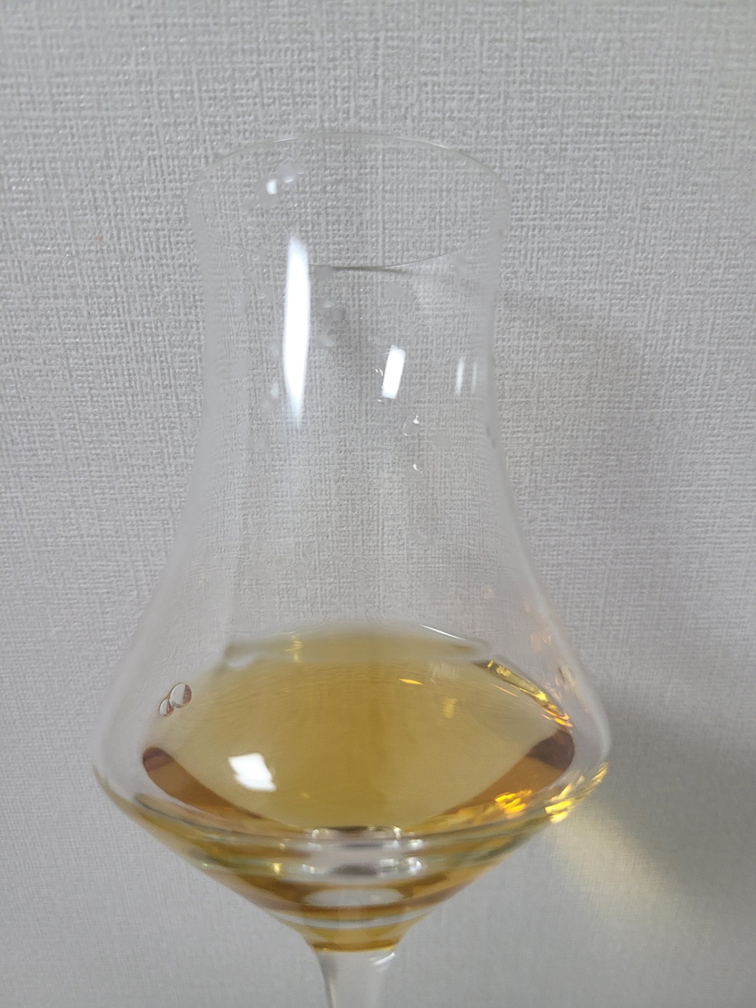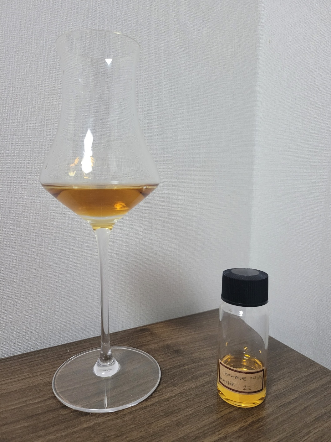 목 넘김 및 여운: 도수대비 목 넘김이 다소 강렬한 편이다. 가벼운 흙내음, 담뱃잎, 비스킷, 짧게 우린 랍상소총의 향이 머물다가 빠르게 사라진다. 혀에는 짠맛과 단맛이 나타난다. 감칠맛과 토피넛, 보리차의 고소함으로 이어진다.