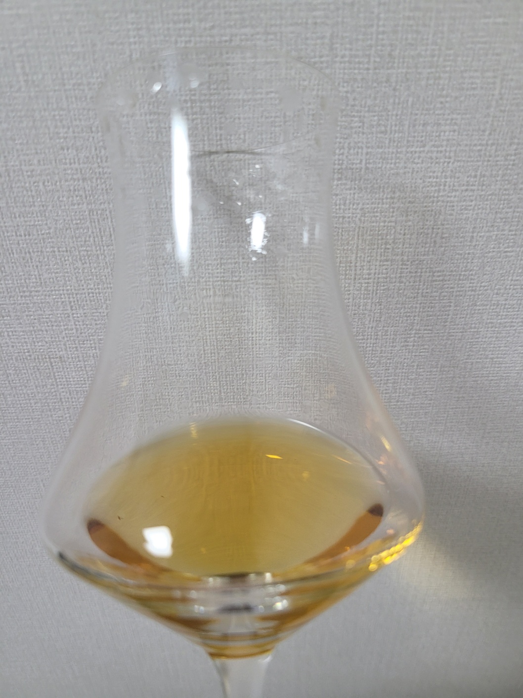 목 넘김 및 여운: 매우 산뜻한 목 넘김이다. 카모마일티의 포근함과 청포도의 상쾌함이 동시에 느껴진다. 사과의 단향과 오렌지 과육의 시트러스가 잔잔하게 터진다. 바닐라와 캐러멜이 나타난 뒤, 스피어민트로 마무리된다. 혀에는 말린 허브와 홍차의 탄닌감에서 오는 떫은맛 그리고 과즙의 단맛이 나타난다.