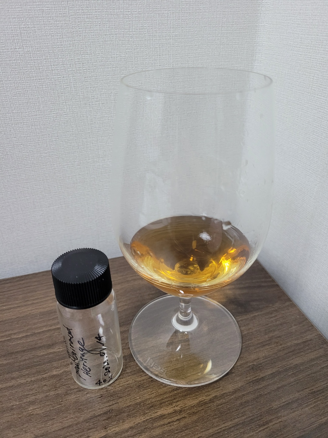 목넘김 및 여운: 블렌디드 위스키 혹은 물을 넘기는 것 처럼 정말 부드럽게 넘어간다. 피니쉬는 중간 정도로 정말 은은하게 사과같은 시트러스함이 올라온다. 그리고 마치 포도 씨앗이나 껍질을 씹고 삼켰을 때 나는 씁쓸함이 올라온다.