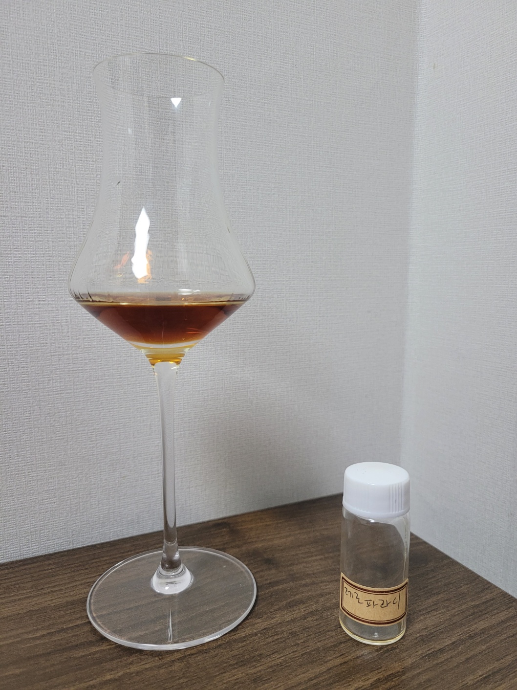 향: 숨을 크게 들이쉬어도 알코올 자극이 거의 느껴지지 않는다. 살짝 그을린 듯한 탄내가 있다. 부담스럽지 않은 선에서 말린 표고와 흙내음 따위의 란시오(Rancio)가 느껴진다. 섬세한 오크 터치와 함께 헤이즐넛과 구운 아몬드가 은은하게 올라온다. 가루내지 않은 정향과 계피 스틱이 부드럽게 훑고 지나가면 껍질을 깐 적포도 과육, 흑설탕, 캐러멜, 토피넛, 말린 과일 등의 단내가 풍부하게 나타난다. 공기와의 접촉이 길어질수록 코코아가루, 패랭이꽃, 그라인더로 잘게 부서진 커피 원두, 담뱃잎 따위가 올라온다.