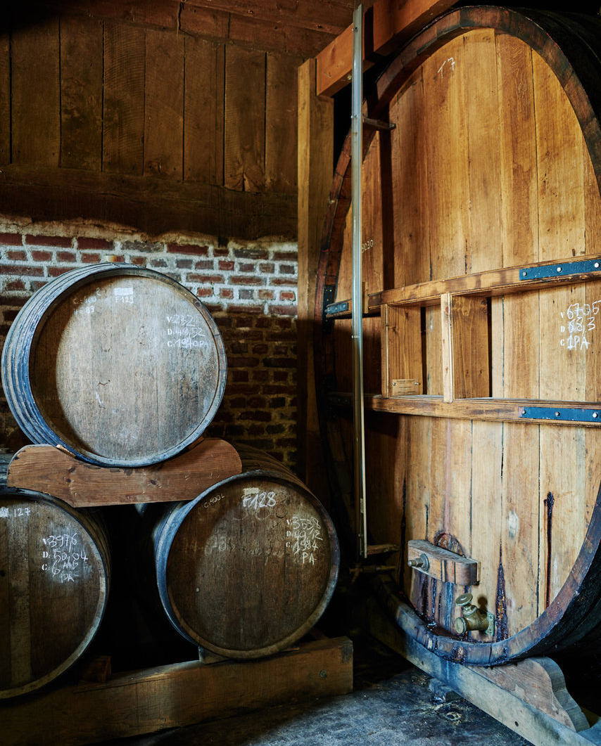 크리스티앙 드루앵은 기본적으로 보르도 와인을 한 번 숙성시켰던 오크통을 가져와 300리터 사이즈로 재조립한 뒤에 내부를 깎아 재사용한다. 오드비 드 시드르는 그 안에서 증발로 인해 휘발 성분이 점차 제거되고, 증발이 점진적으로 증가함에 따라 더욱 부드럽고 농축된 향을 지닌 깔바도스가 된다.