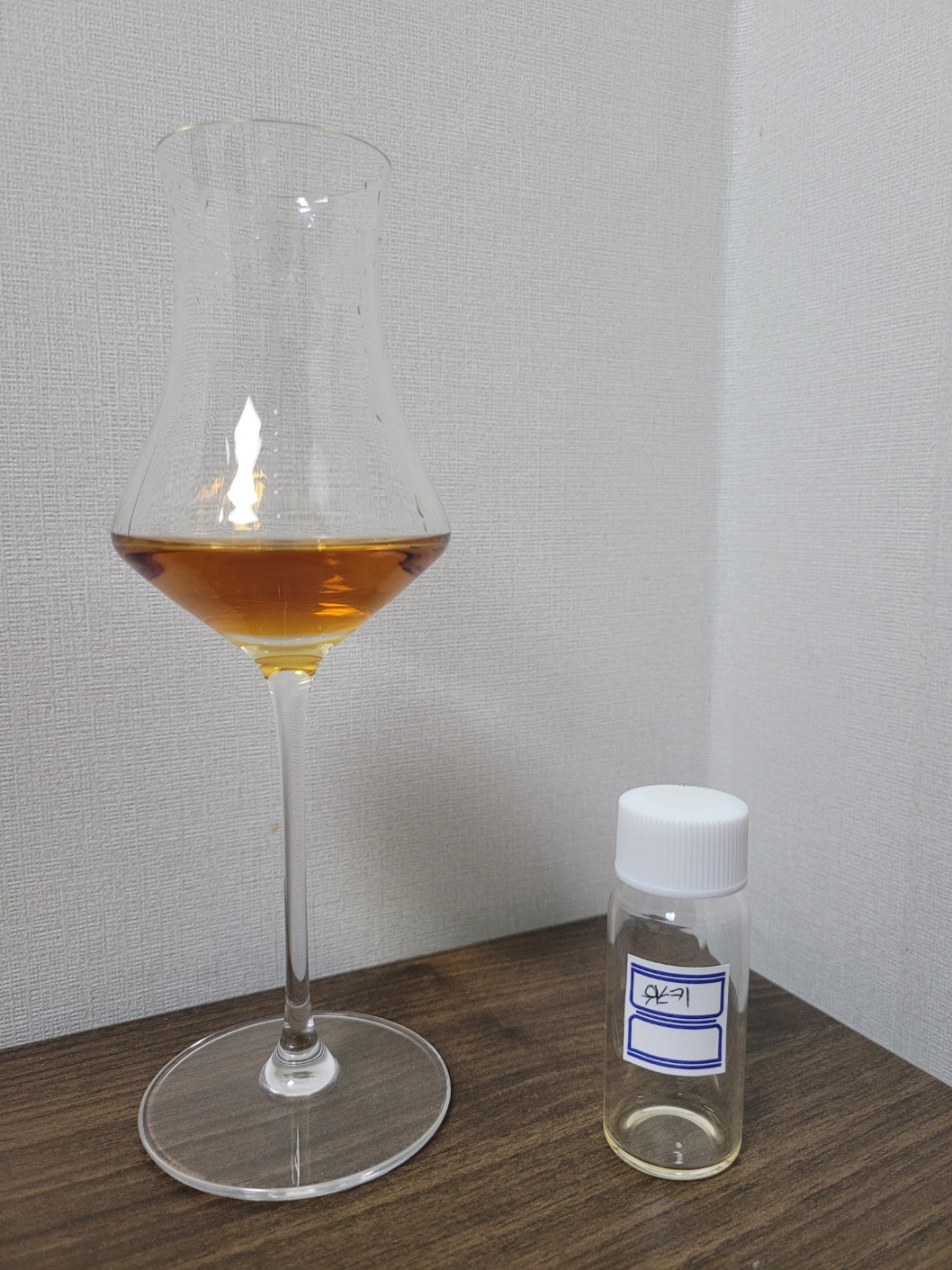 목 넘김 및 여운: 강렬한 목 넘김이다. 네일 리무버의 아세톤내와 계피, 육두구 따위의 향신료가 터진다. 이후 바닐라와 캐러멜 그리고 황설탕 시럽으로 코팅한 듯한 사과 향이 은은하게 내려앉는다. 혀에는 씁쓸한 향신료와 캐러멜의 단맛 그리고 과일 껍질에서 오는 탄닌감이 나타났다가, 뭐가 있었냐는 듯 빠르게 사라진다.