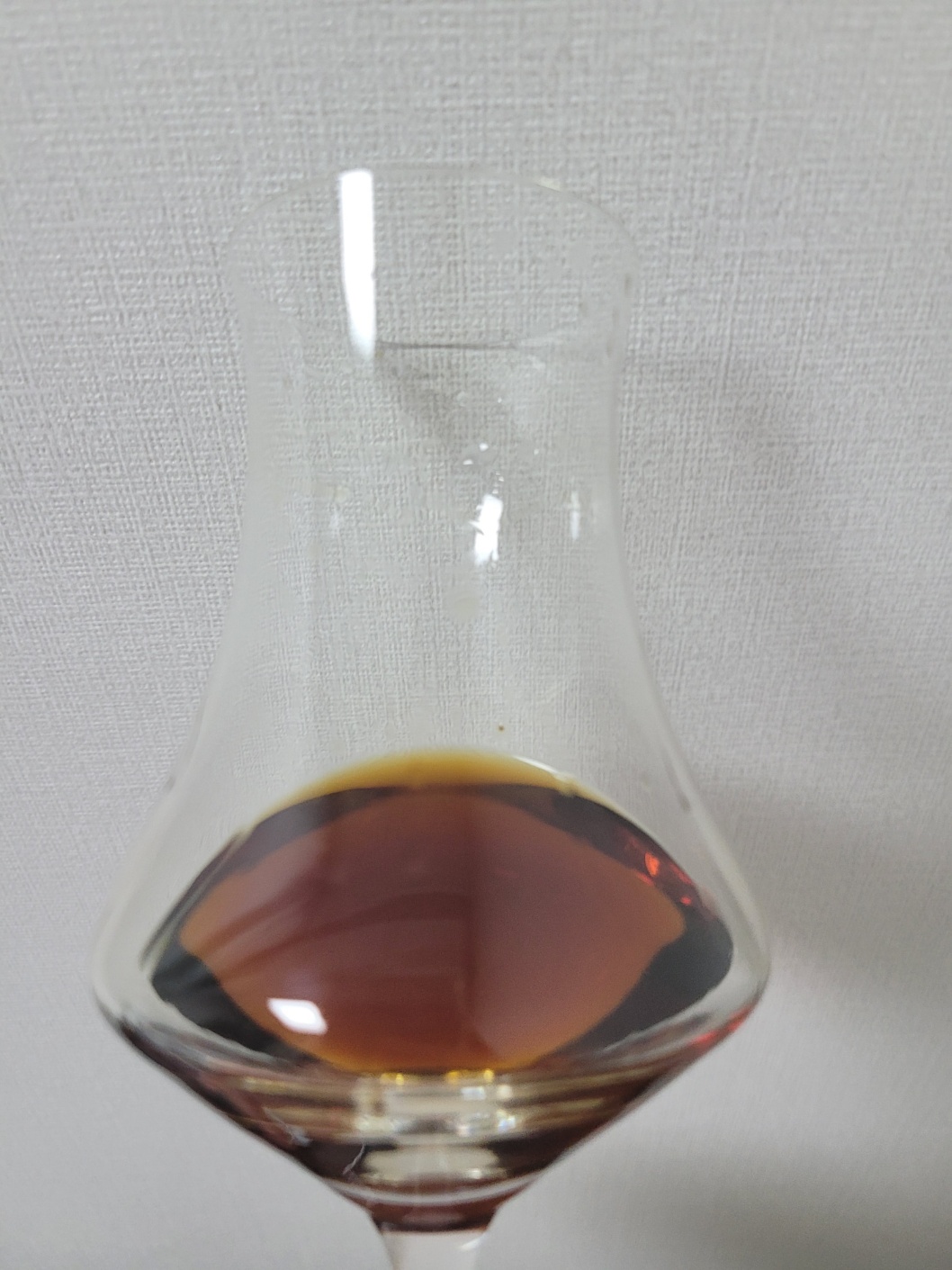 목 넘김 및 여운: 도수 대비 상당히 부드러운 목 넘김이다. 정향의 화함과 흑후추의 알싸함이 크게 터진 후, 유기물 탄내가 은은하게 올라온다. 다크초콜릿과 검붉은 과실 그리고 담뱃잎으로 비강이 가득 찬다. 혀에는 적포도의 풍미가 가신 뒤, 오크의 탄닌감으로 인해 꺼끌꺼끌해진다. 카카오닙스의 씁쓸함 약간이 길게 남아 있는다.