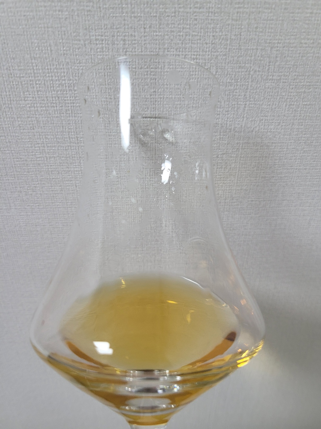 목 넘김 및 여운: 산뜻한 목 넘김이다. 주니퍼베리 향이 잠깐 나타난다. 이후 시나몬 가루를 살짝 뿌린 토스트, 육두구, 캐러멜, 바닐라 따위가 비강에 남는다. 혀는 향신료 뉘앙스로 들끓어 잠깐 마비되었다가 캐러멜의 단맛과 비스킷의 고소함이 나타난다. 빠르게 사라진다.