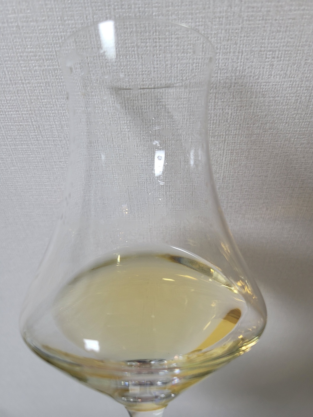 향: 알코올에서 오는 자극이 이따금씩 치댄다. 매캐한 탄내, 페놀릭 한 약품냄새, 다 타버려 하얗게 된 담배 냄새, 쇠 냄새, 잔류 염소 냄새가 다른 무엇보다도 강렬하게 나타난다. 후추와 다진 마늘의 알싸함이 빠르게 훑고 지나가서는 은은한 바닐라와 씨앗 부분에 가까운 참외 과육의 향이 올라온다. 다소 어린 그라파의 느낌이 살아있다.