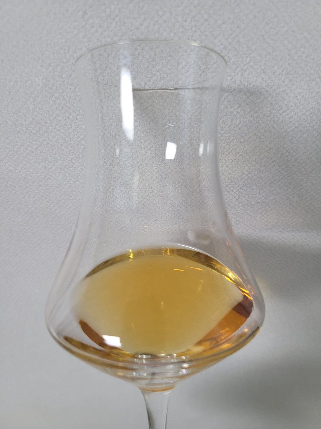 목 넘김 및 여운: 강렬한 목 넘김이다. 뜨거운 김칫국을 한 숟가락 떠서 넘긴 뒤의 시원함이 올라온 뒤, 붉은 베리류의 시트러스가 비강을 가득 매운다. 그리고 천천히 곡물 내음과 피트의 페놀릭한 느낌이 내려앉는다. 혀에는 베리의 산미와 와인의 떫은맛 그리고 고춧가루의 매콤함이 그대로 중첩되서 올라온다. 썩 유쾌한 마무리는 아니다.