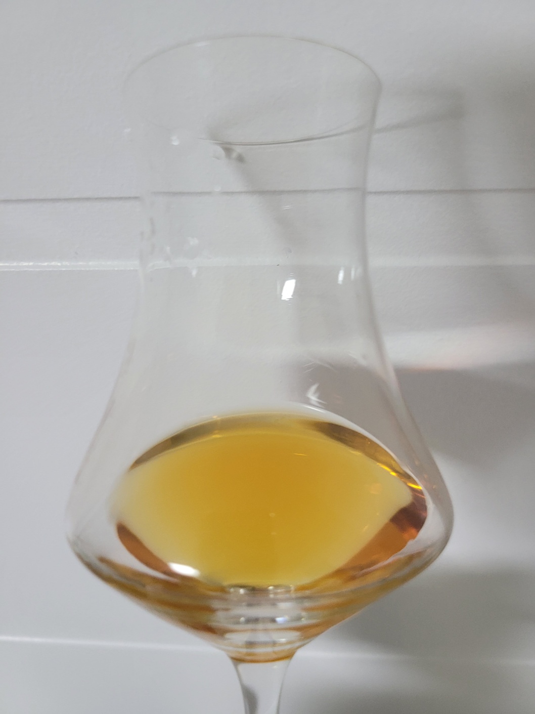 목 넘김 및 여운: 매우 산뜻한 목 넘김이다. 상큼한 오렌지의 시트러스가 비강을 한 바퀴 휘저은 다음 살구와 베르가못 그리고 리치 따위가 은은하게 내려앉는다. 혀에는 꿀에 절인 오렌지 같은 눅눅한 산미와 귤락의 씁쓸함 그리고 캐러멜의 단맛이 나타났다가 빠르게 사라진다.