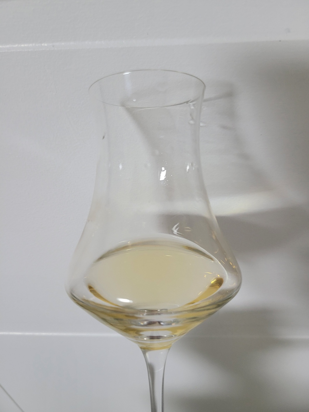 목 넘김 및 여운: 강렬한 목 넘김이다. 에스테르가 크게 터지면서 파인애플, 바나나, 사과, 사탕수수 즙 등이 비강에 다소 너저분하게 머문다. 페인트와 목공본드 뉘앙스 그리고 매캐함이 물을 마셔도 잘 지워지지 않는다. 혀는 강한 알코올 자극과 알싸함으로 인해 잠시 마비되었다가 천천히 풀린다. 농축된 사과식초를 물로 희석하고 거기에 레몬 제스트와 파인애플 과육 그리고 씁쓸한 귤락을 갈아 넣은 것 같은 느낌이 올라온다. 무척 오래 지속된다.