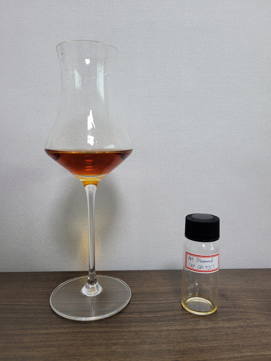 향: 알코올이 가볍게 치댄다. 나무가 완전히 연소되어 남은 새하얀 재가 바람에 의해 흩날리는듯한 분말감과 아스팔트 도로 공사에 의한 매캐한 냄새 그리고 운동장의 흙먼지 같은 더티함으로 가득하다. 페인트와 신나 뉘앙스의 에스테르도 풍부한 편이다. 정향, 팔각, 흑후추, 계피 등 향신료 뉘앙스도 두텁다. 공기와의 접촉이 길어질수록 건과일이 조금씩 올라오긴 하나 매캐함이 더 앞선다. 오렌지향 모기 스프레이, 진저비어, 아니스, 멘솔, 물파스 향이 느껴지면서 베르사유 싱글 우든 팟 스틸의 증류액을 연상케 한다. 전체적으로 향조가 복잡하면서도 난잡하다.
