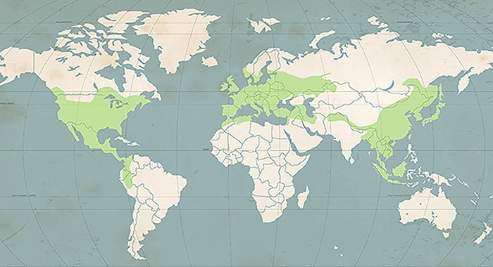 주로 미국 및 캐나다의 위치한 애팔래치아 산맥에서 약 80 ~ 120년 자란 것을 벌목하여 가공한다. 다른 주요 종에 비해 성장이 빠르며 더 촘촘하고 나이테가 넓고 탄닌 함량이 낮다. 더 많은 양의 틸로스(Tylose)를 함유하고 있어 표면을 가로질러 톱질해도 액체가 새는 것을 두려워하지 않고 수액의 통로를 깨트릴 수 있다. 덕분에 가공해도 50%가 넘는 수율을 보인다.