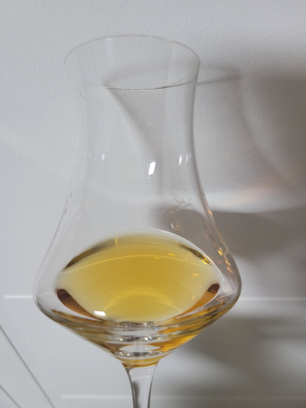향: 알코올 자체는 얌전하지만 스피어민트의 날카로우면서도 화한 느낌이 있다. 그 뒤로는 청포도, 데미소마 애플 같은 청사과 가향 음료, 멘솔, 새송이 등 전형적인 그랑 샹파뉴의 특징이 나타난다. 란시오 뉘앙스는 거의 없다시피 하다. 껍질을 벗기지 않은, 그 자체에서 오는 육두구의 느낌이 강하다. 살짝 거친면이 있다.