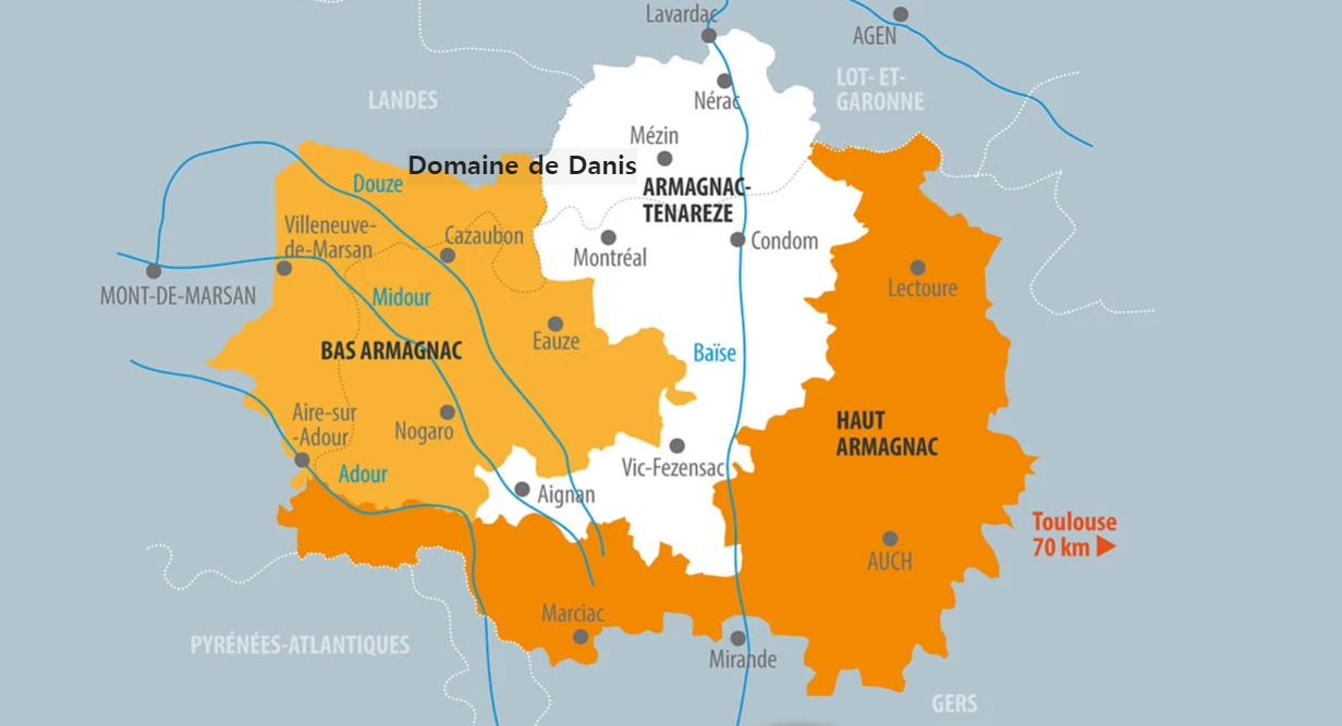 도멘 드 다니스가 위치한 까스텔노-도장 라바레르(Castelnau-d’Auzen Labarrère) 꼬뮌은 서류상으로는 아르마냑-테나레즈(Armagnac-Ténarèze)에 가깝지만 떼루아의 유사성으로는 바-아르마냑(Bas-Armagnac)에 가깝다. 때문에 이들은 레이블에 테나레즈라는 단어를 쓰지 않는다.