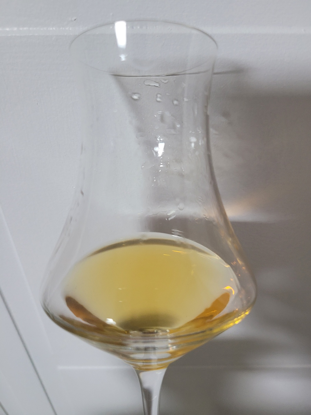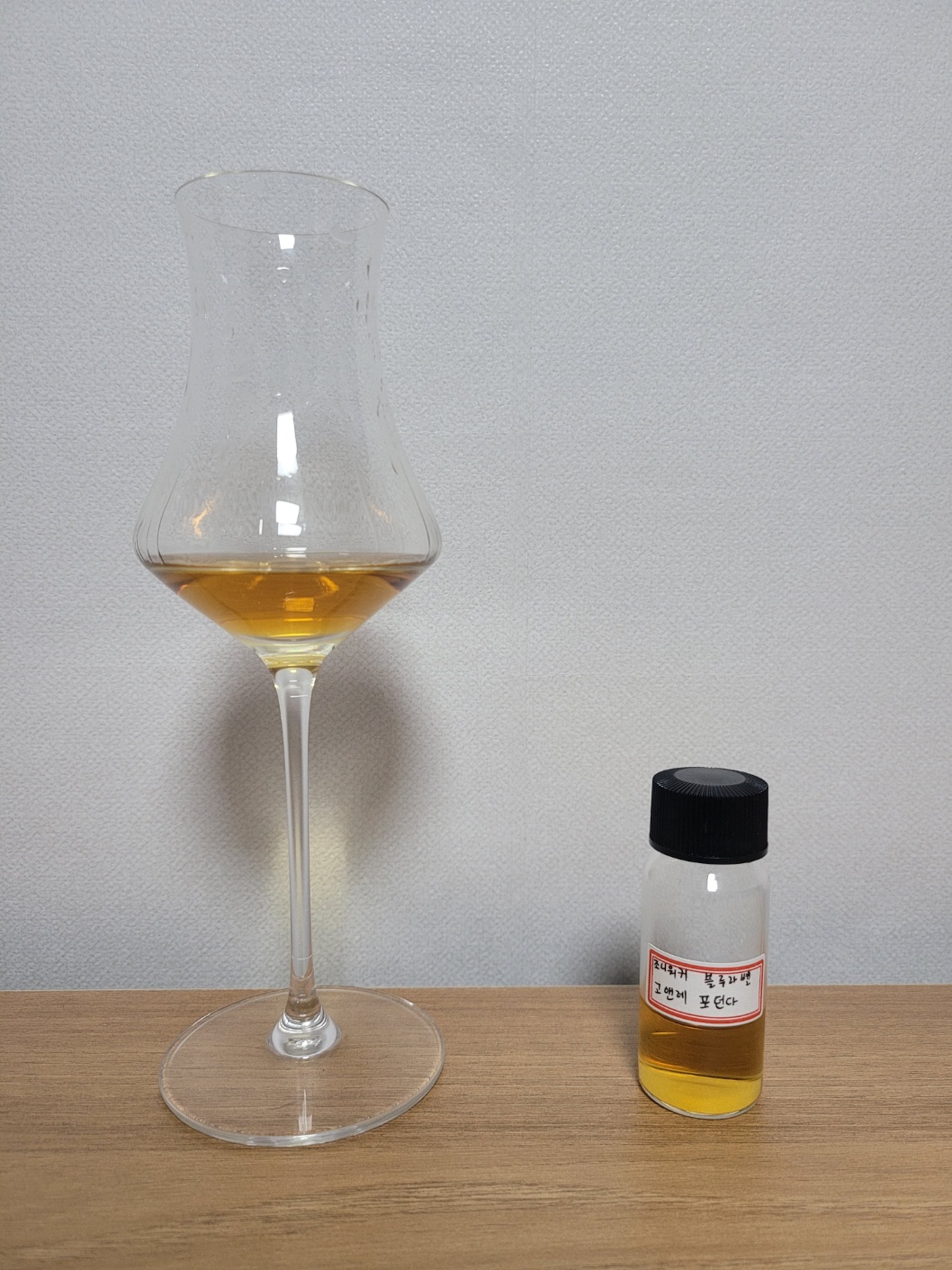향: 알코올의 존재감이 꽤 강한 편이다. 꿀과 캐러멜의 달콤함 아래로 매우 옅은 스모키가 기저에 잔잔하게 깔려있다. 신선한 생과의 느낌보다는 시럽에 푹 절여진 과일의 뭉근한 단내에 가깝다. 건초의 마른 풋내와 몰트 쩐내가 거슬리지 않을 정도로 나타난다. 향신료 뉘앙스는 많이 뭉개져 있지만 끝에 살짝 생강편의 알싸함이 잡히기도 한다. 단순하지만 그 자체로 즐거운 향조다.