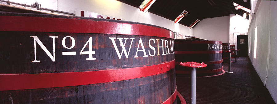 Mull's only Scotch whisky distillery produces both peated an unpeated whisky for use in the Black Bottle and Scottish Leader blends, as well as for Ledaig and Tobermory single malts.